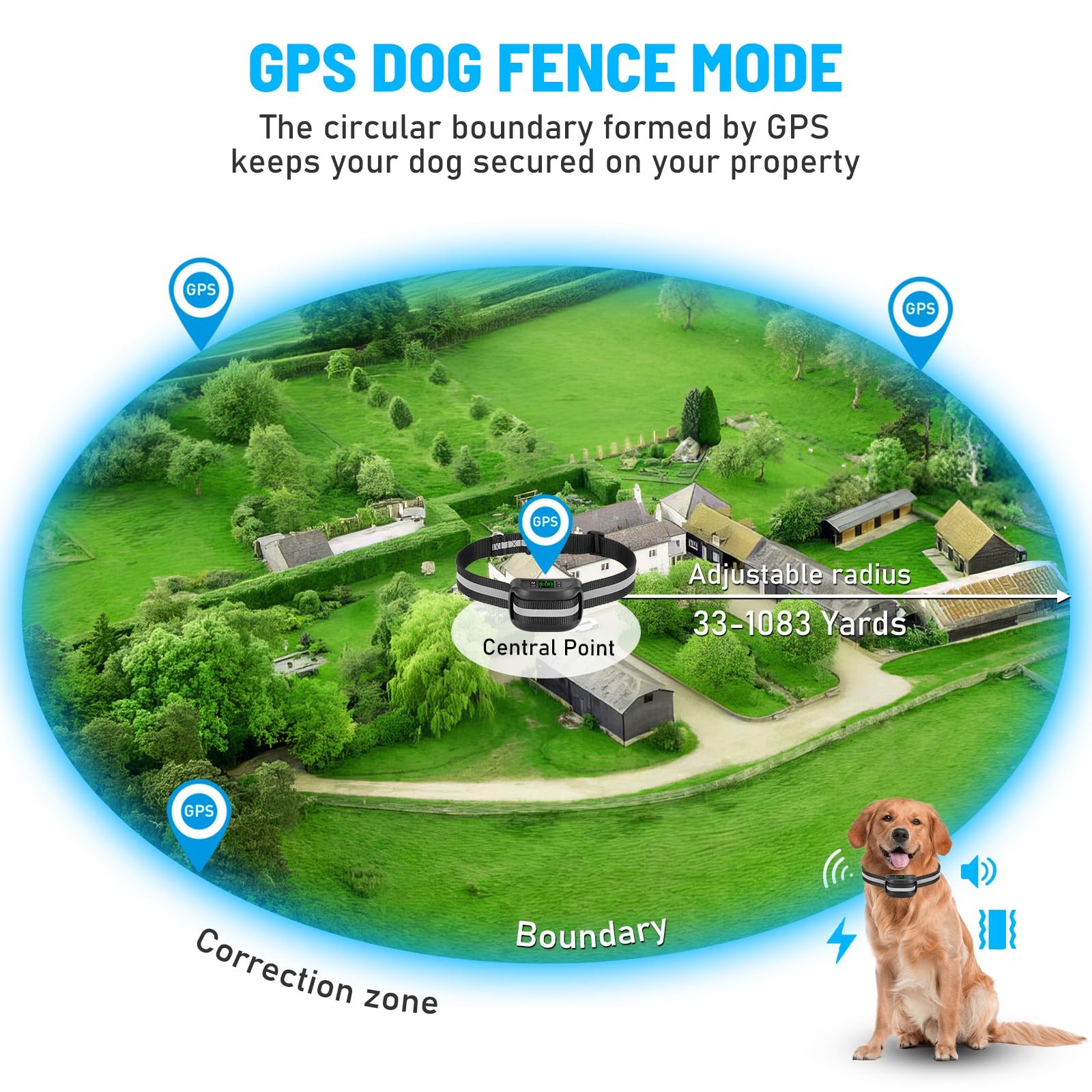 2 in 1 GPS Wireless Dog Fence with Remote Training, Radius from 33 Yards to 1...