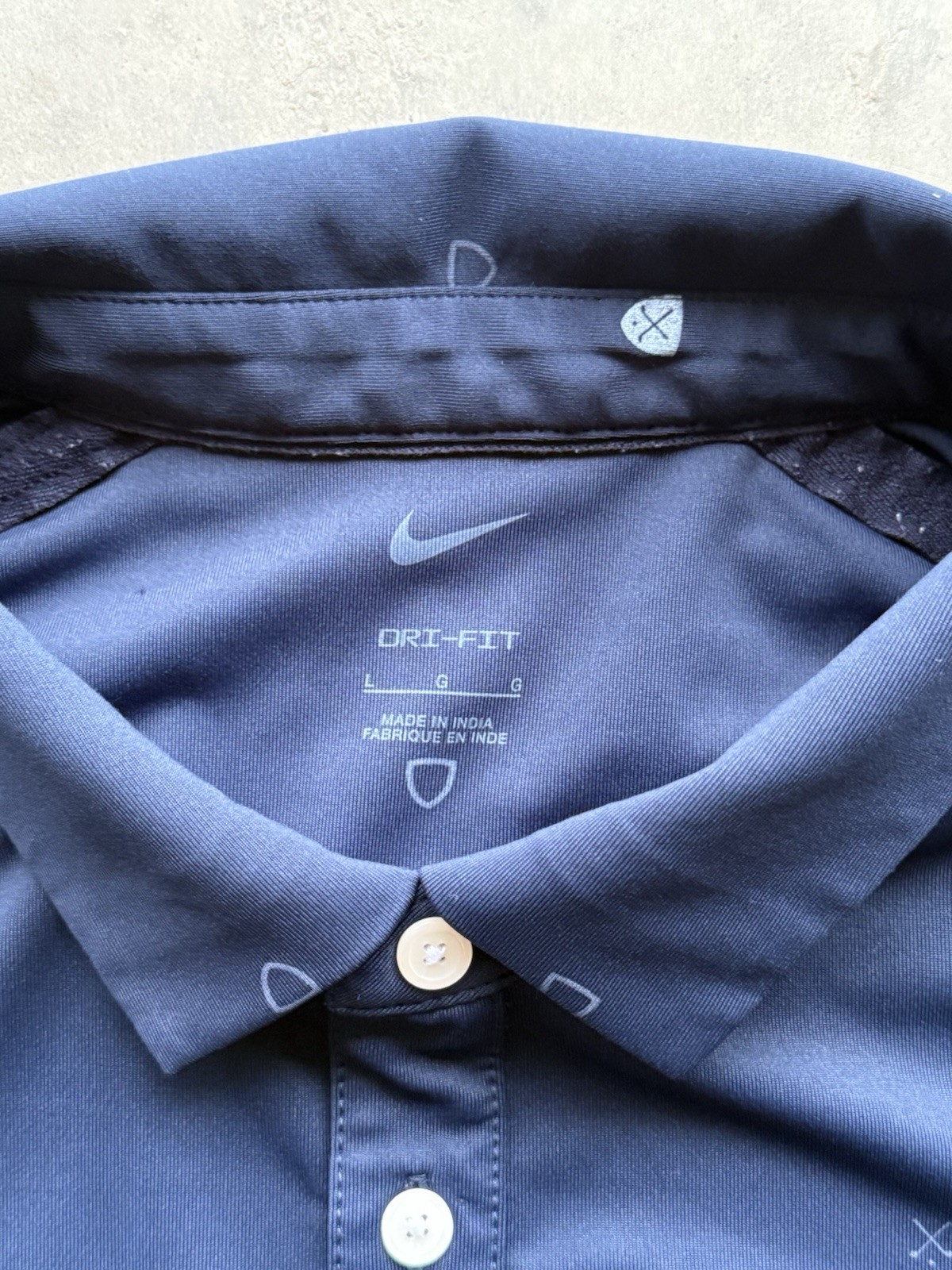 Nike Dri-Fit Heritage Polo Shirt Men s Large Golf Player All Over Print Shield
