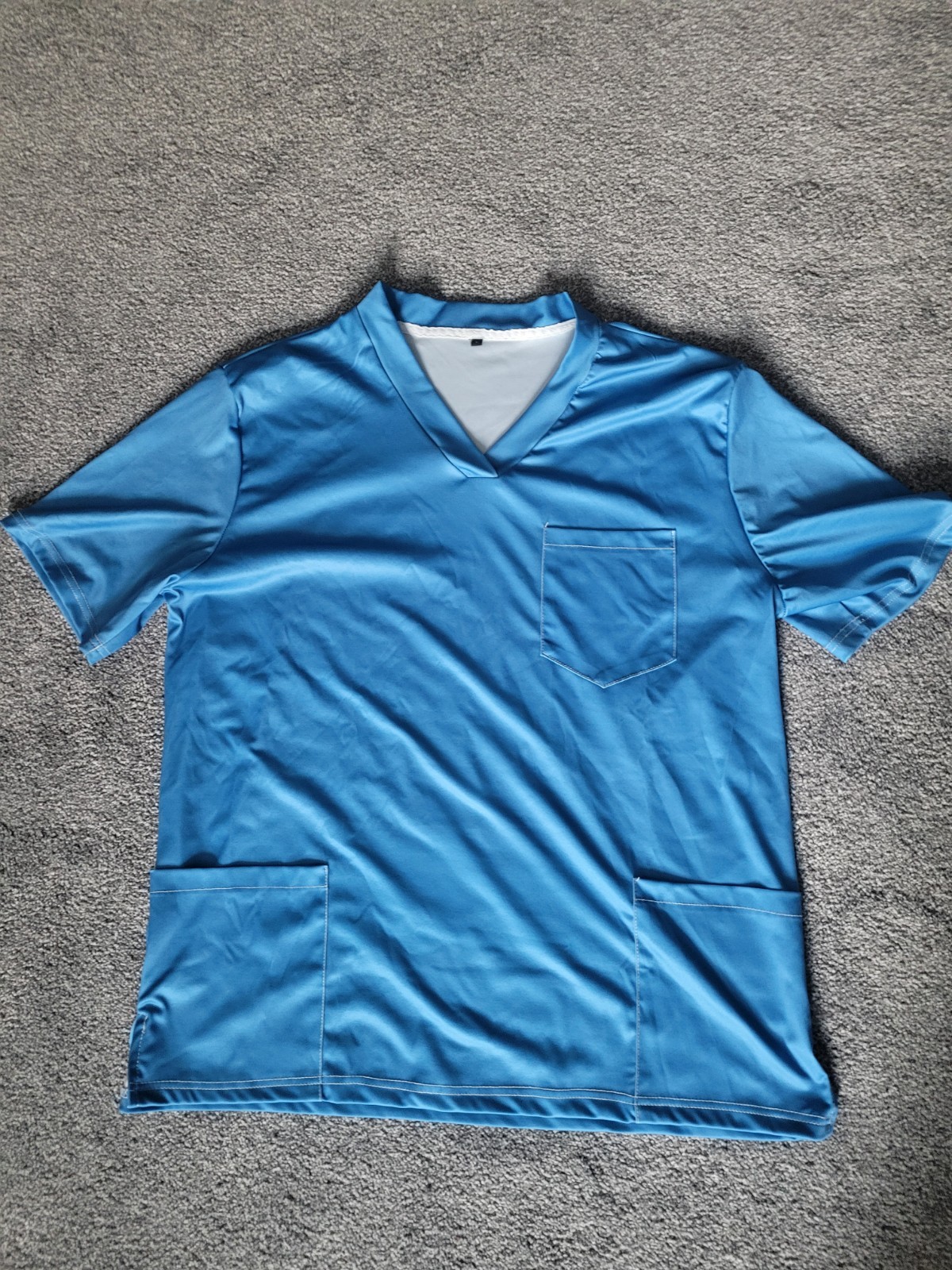 как выглядит Unisex Scrub Top size L Blue Medical Nursing Uniform V-Neck Pockets Mesh Trim фото