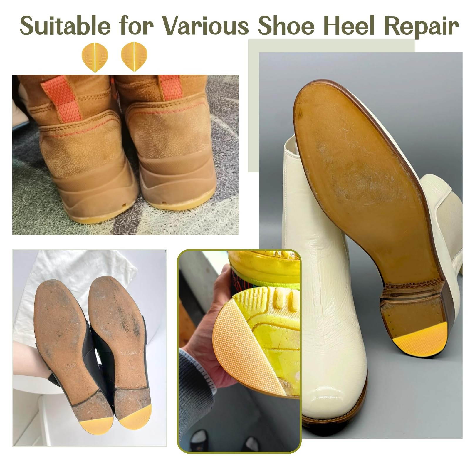 Shoe Heel Repair, Rubber Sole Pads, 2 Pairs Heel Bottom Rubber Patch, Yellow