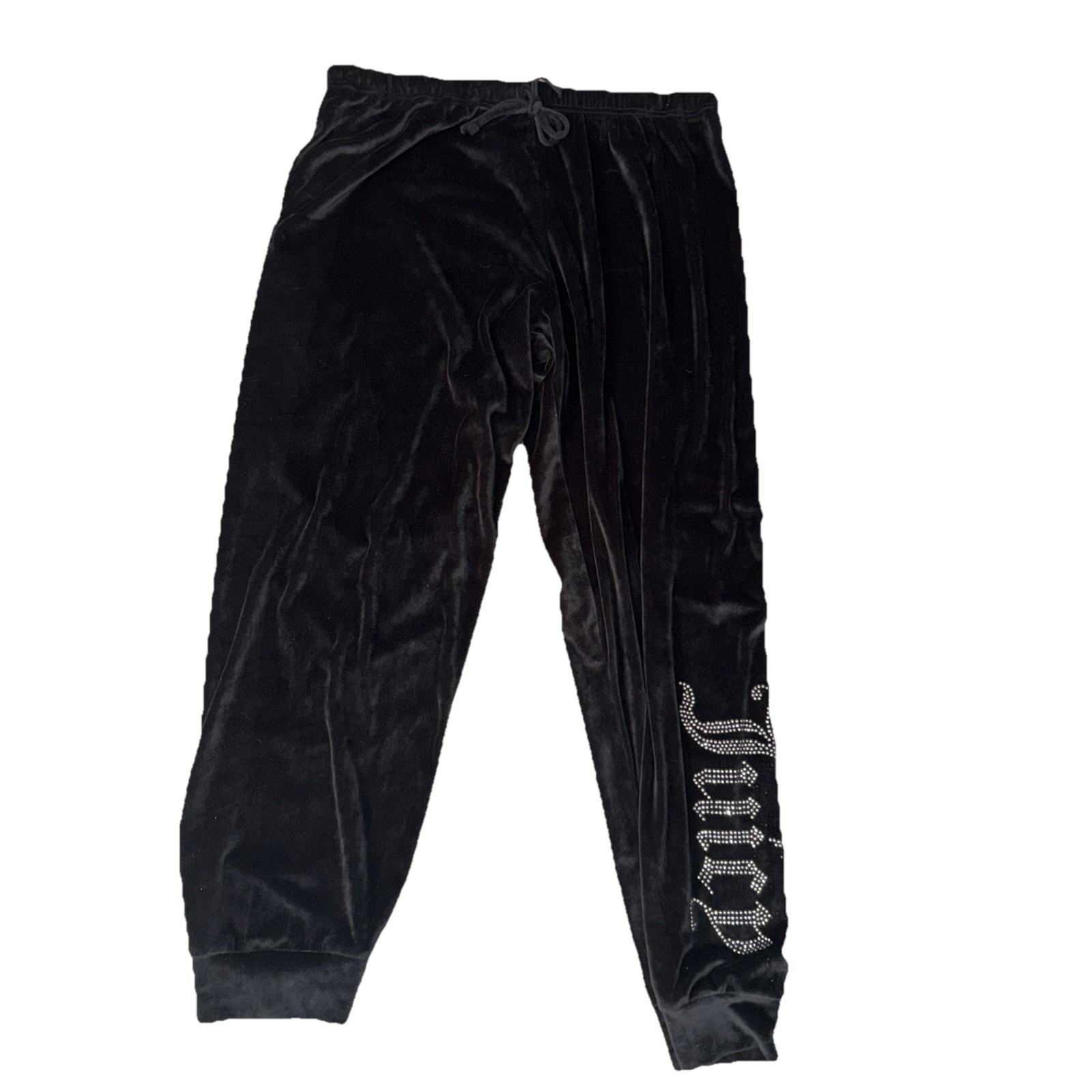 Juicy Couture Women Velour Jogger Pants XL Black Leg Rhinestone Elastic Y2K
