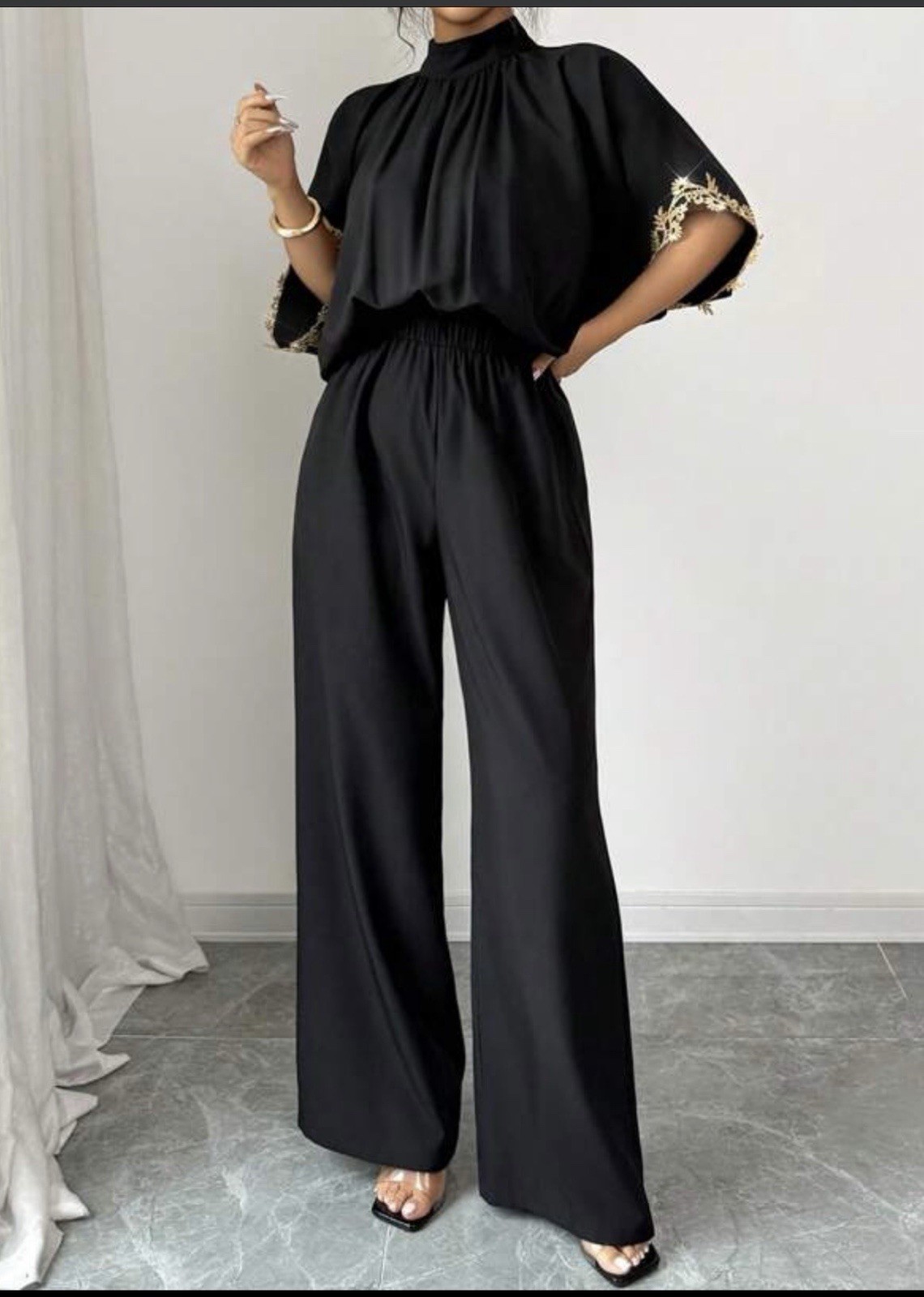 как выглядит Black Wide Leg Jumpsuit. фото
