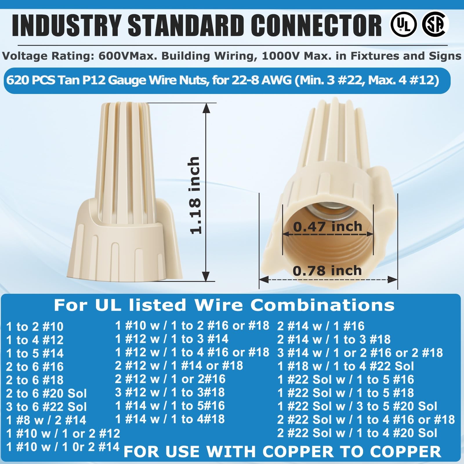 620 PCS Winged Tan Wire Nuts 12 Gauge for 22-8 AWG, HSP12 Easy Twist-On and E...