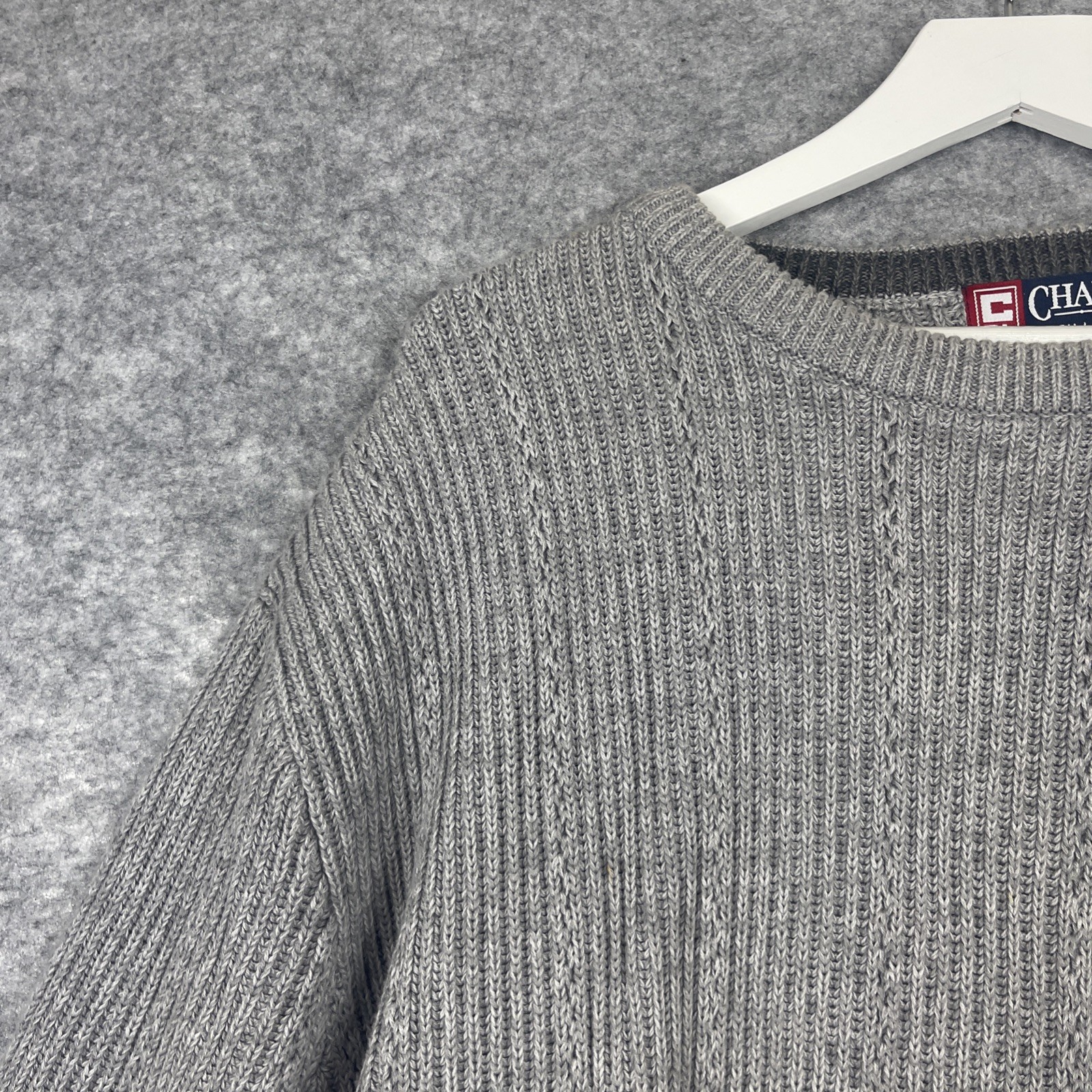 Chaps Ralph Lauren Cable Knit Sweater Men s XL Solid Gray Heavyweight Cotton