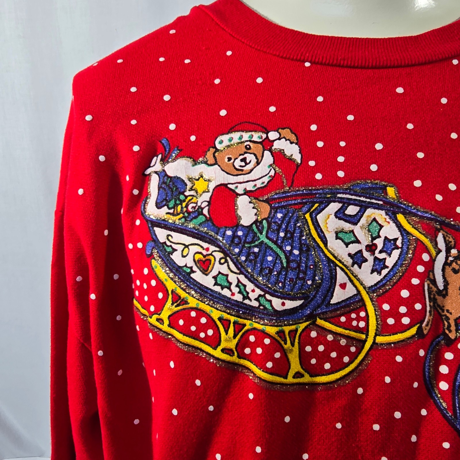 Vintage Teddy Bear Santa Sleigh Reindeer Christmas Sweatshirt Red Adult XL 90s