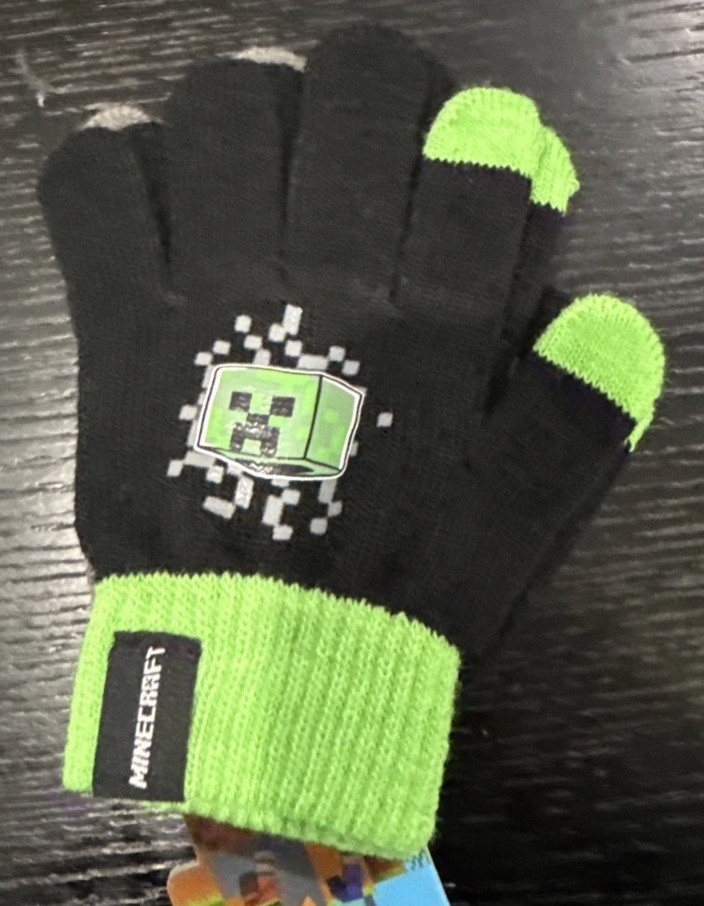 2 Pack Minecraft Creeper Green Black Gloves Children Size 5-9 Years