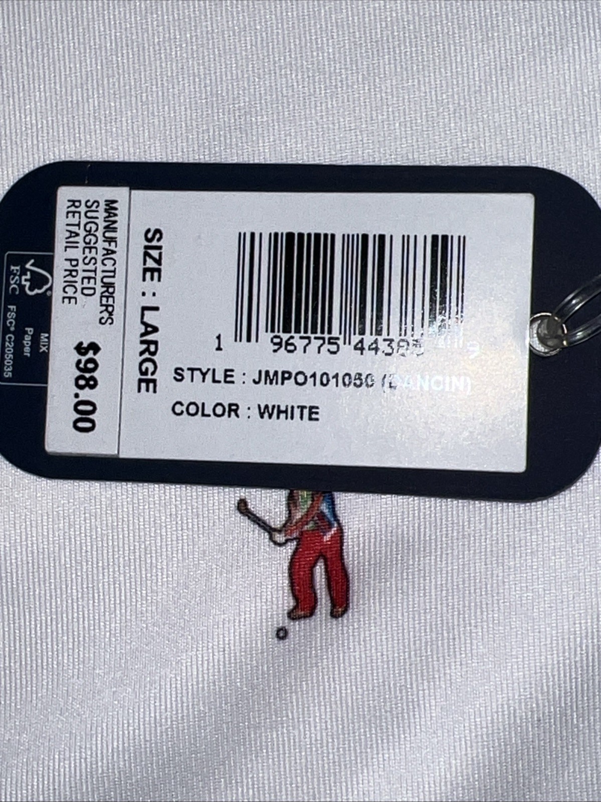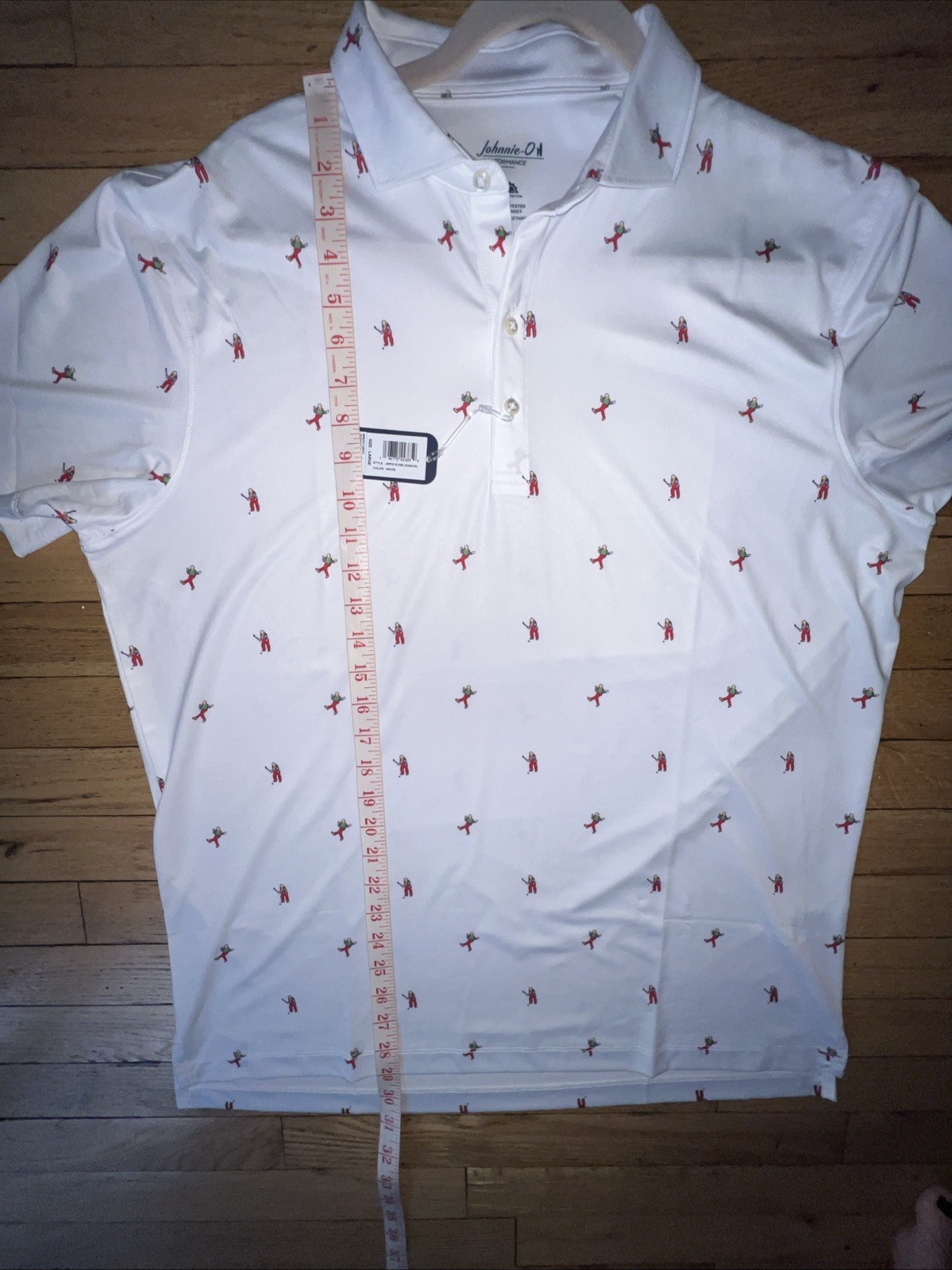как выглядит NWT johnnie-O DANCIN Golfer Printed Featherweight Performance Polo White LARGE фото