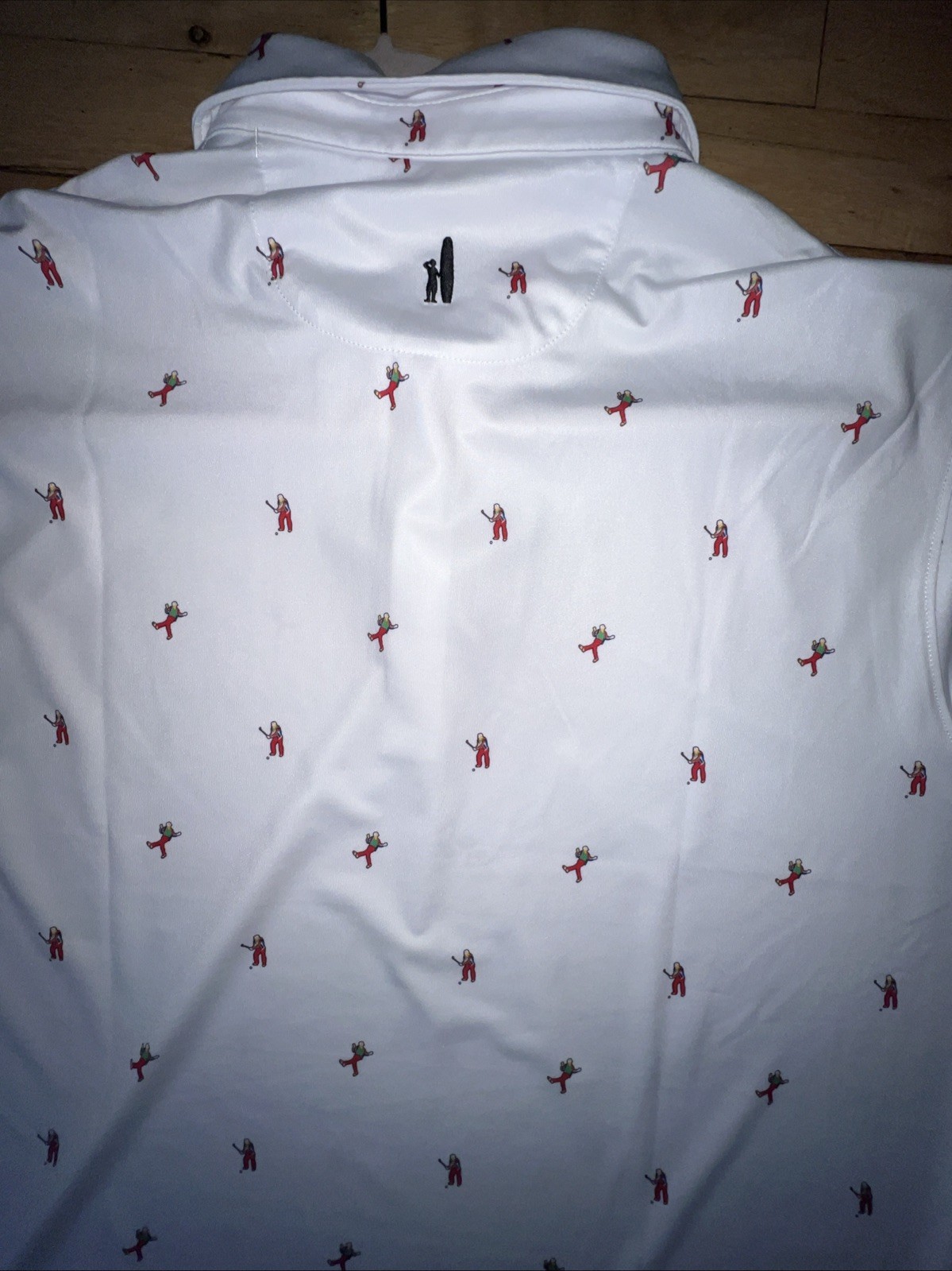 NWT johnnie-O DANCIN Golfer Printed Featherweight Performance Polo White LARGE