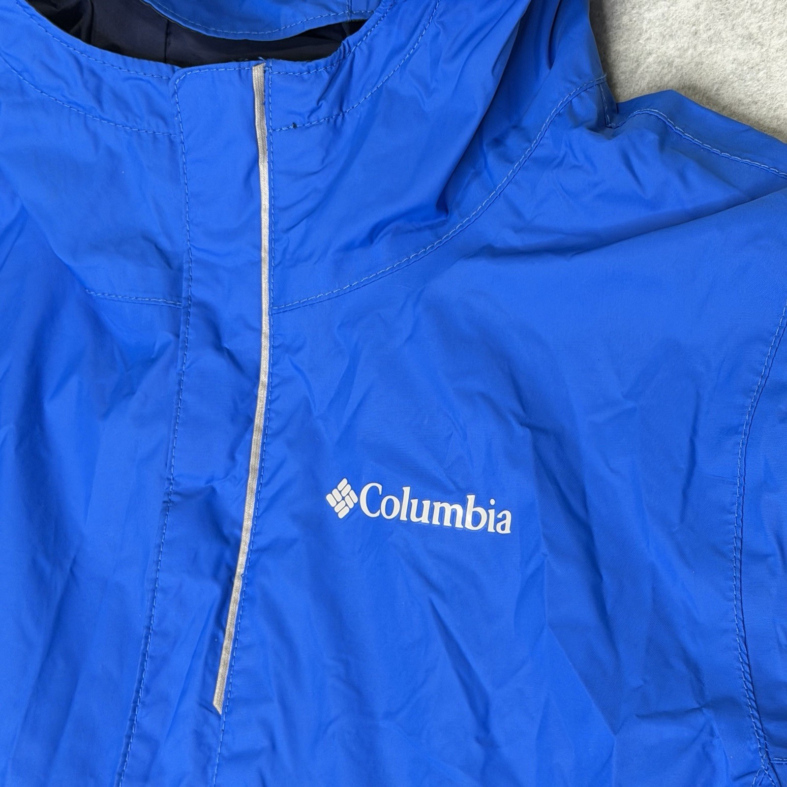 как выглядит Columbia Youth Size M 10/12 Omni Tech Blue Hooded Windbreaker Rain Jacket фото