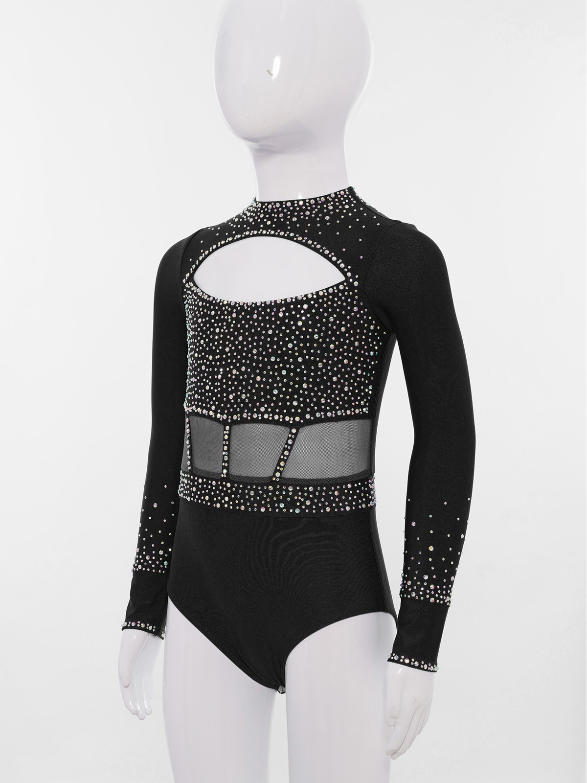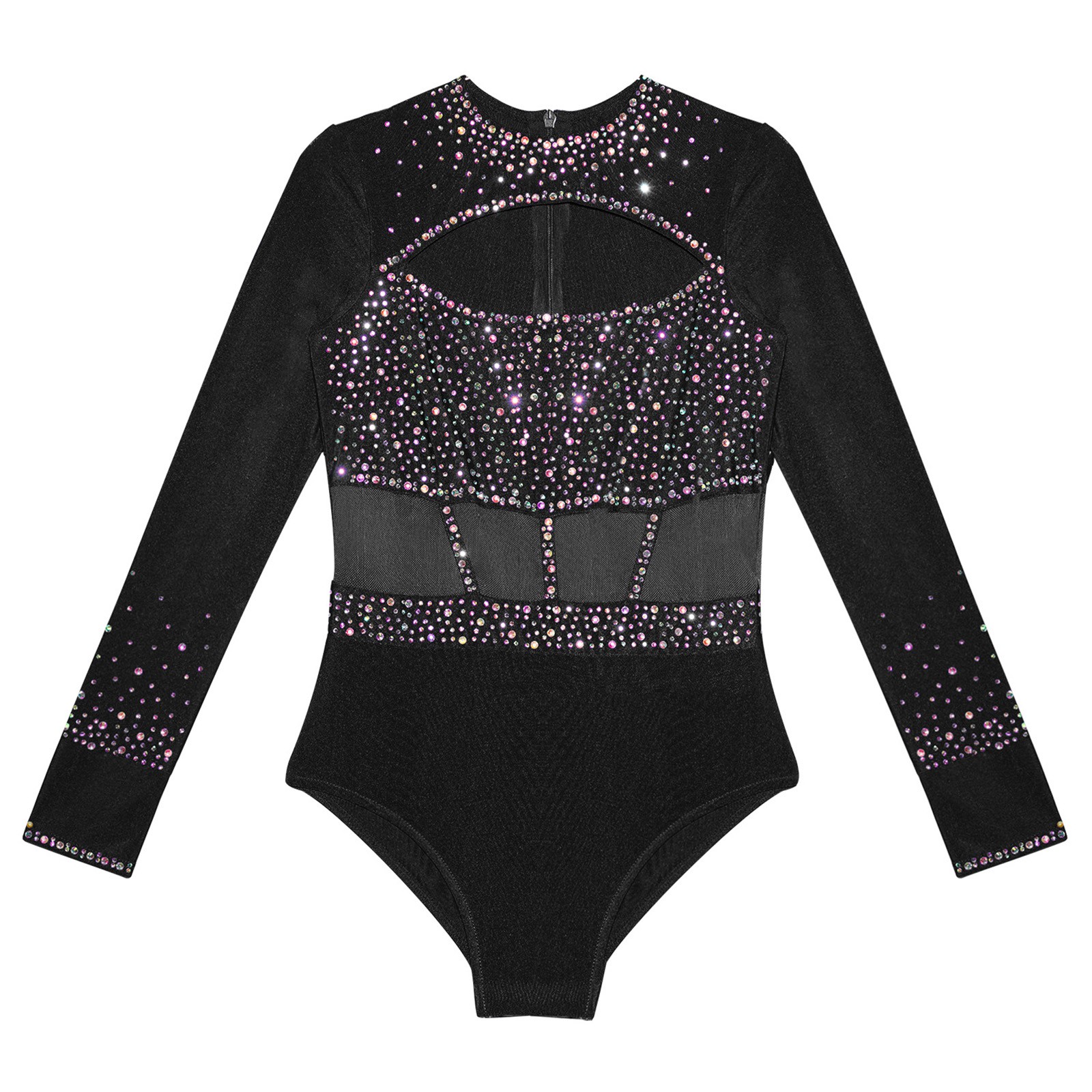 Kids Girls Jumpsuit Figure Skating Leotard Yoga Bodysuit Cutout Front Shiny