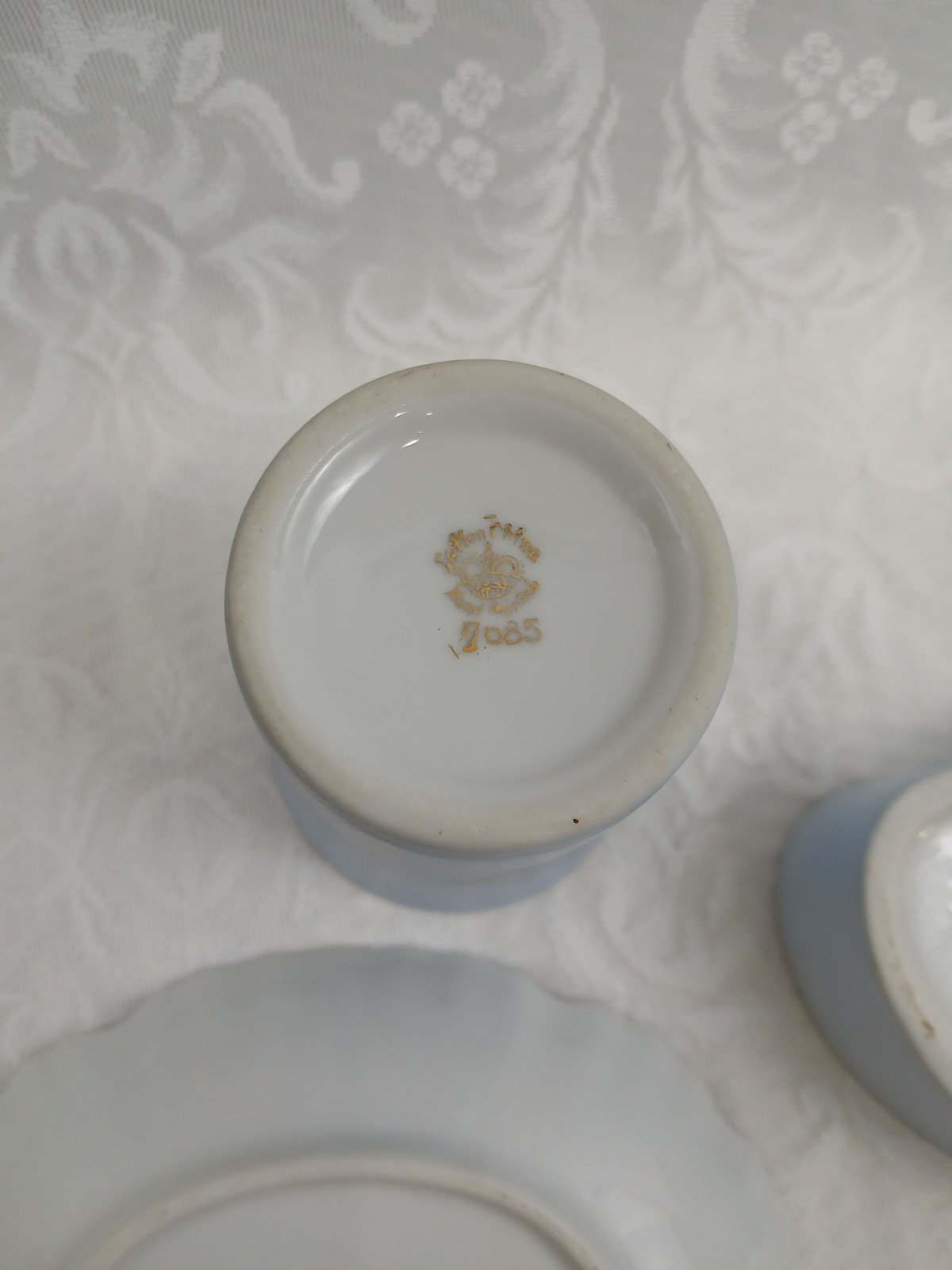как выглядит Blue Flower 3 Piece Lefton Bathroom Set Soap Dish Cup Trinket Box Vintage фото