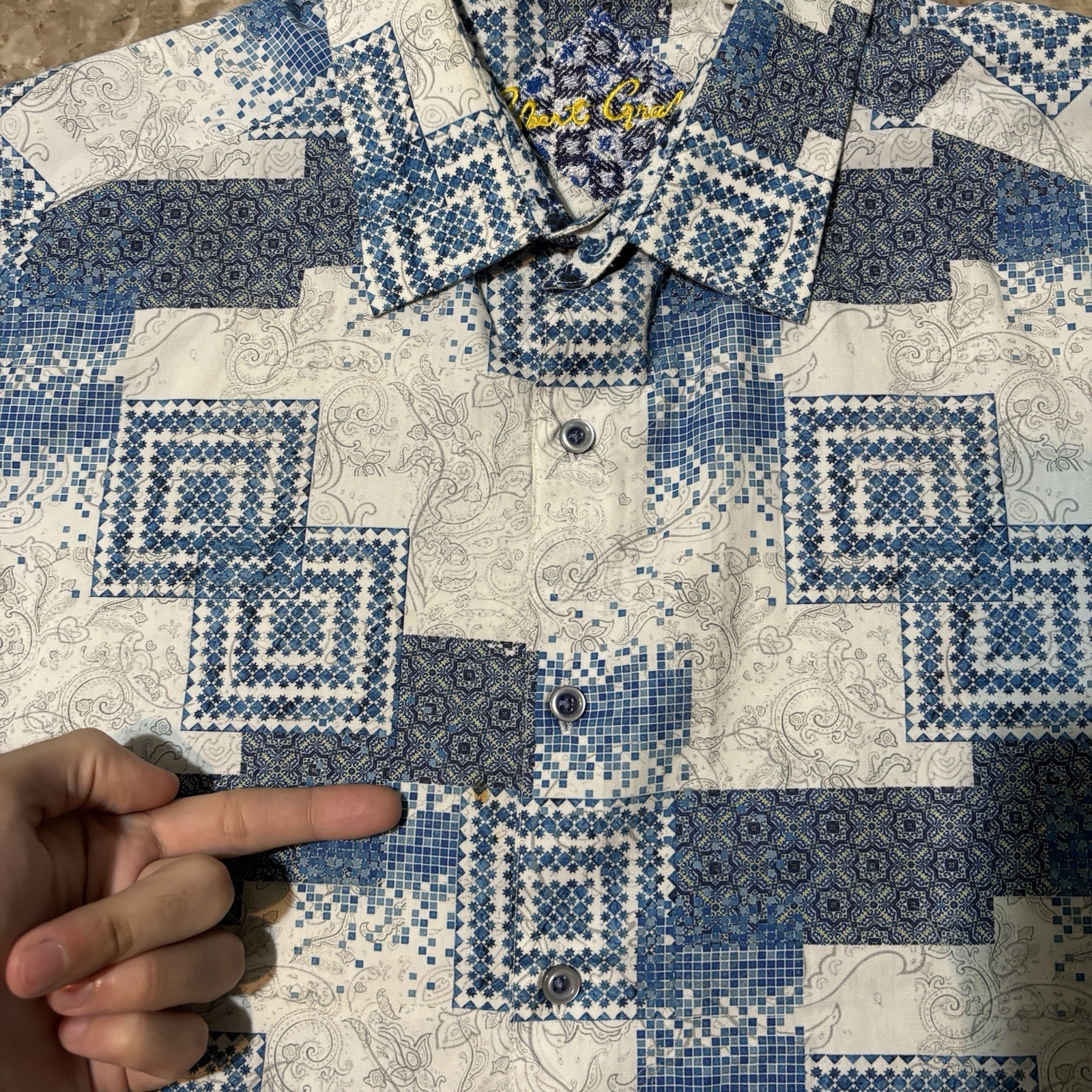 как выглядит Robert Graham Shirt Mens Large Blue Paisley Abstract Classic Fit Flip Cuff фото