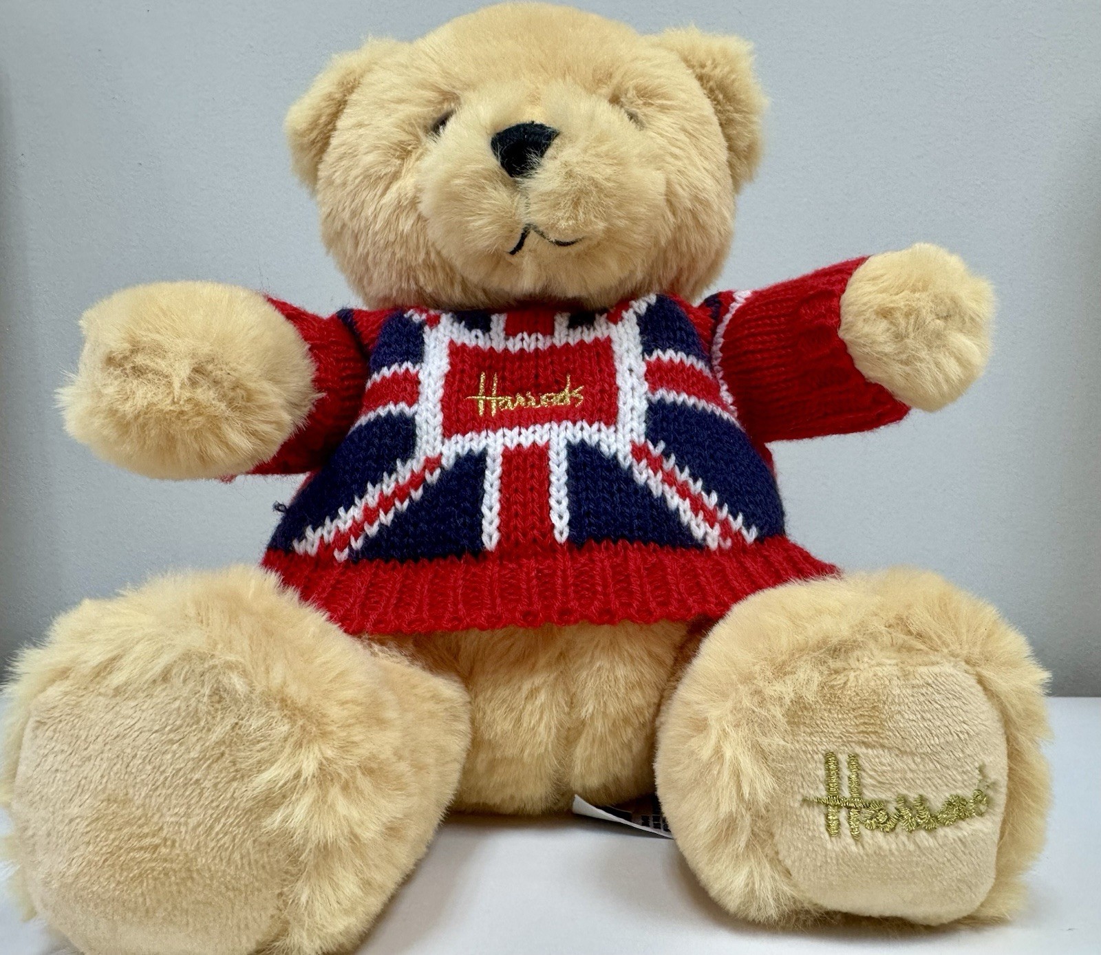 • Harrods Teddy Bear Plush Union Jack Flag Sweater Red 9 British Stuffed Toy
