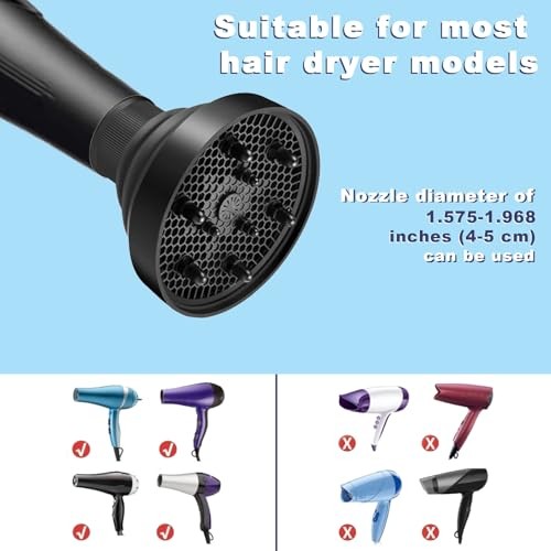 Collapsible Hair Dryer Diffuser Attachment, Fits 1.57-1.99 Inch Nozzles, Evenly