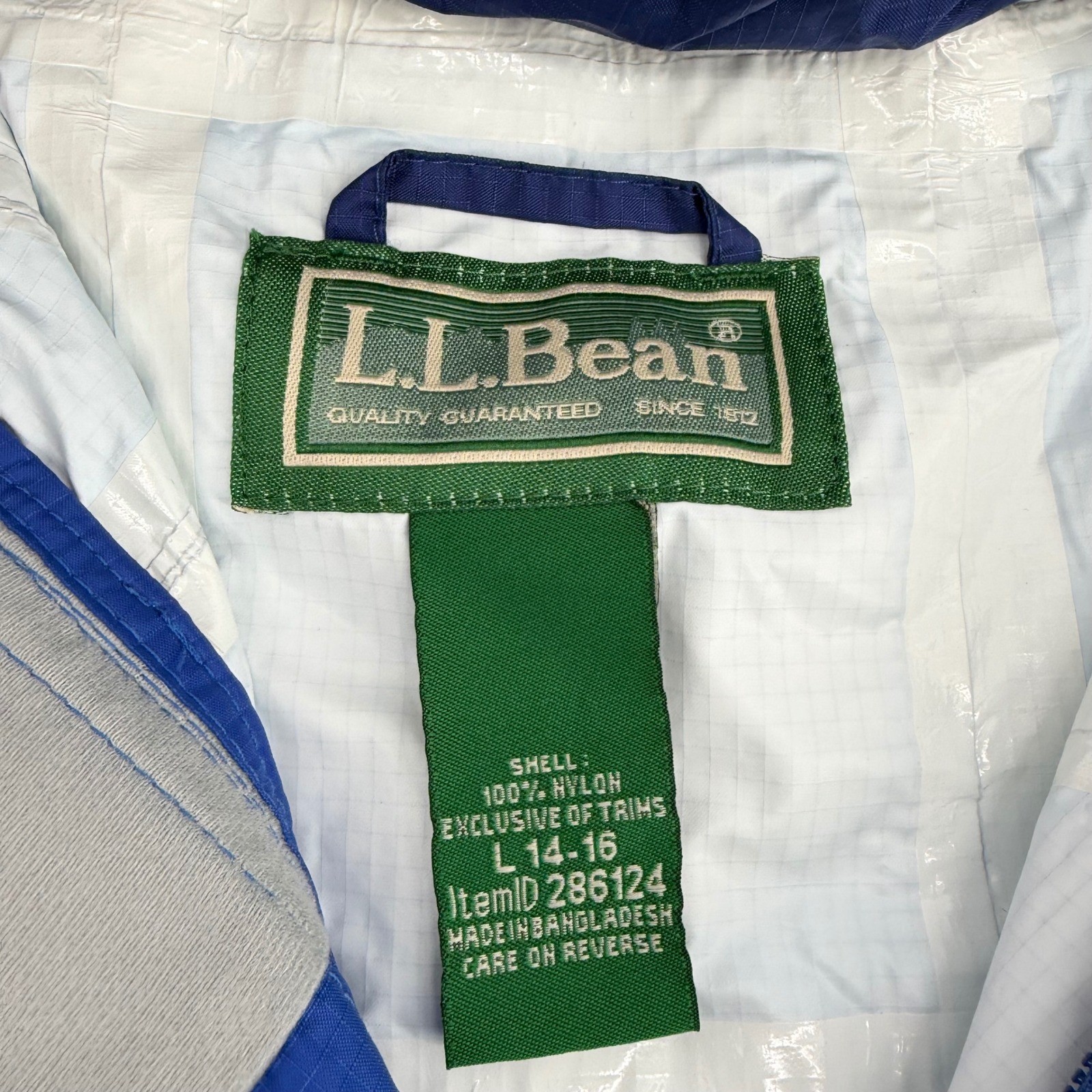 как выглядит LL Bean Kids Blue Ripstop Rain Jacket Hooded Reflective Shell L 14-16 фото