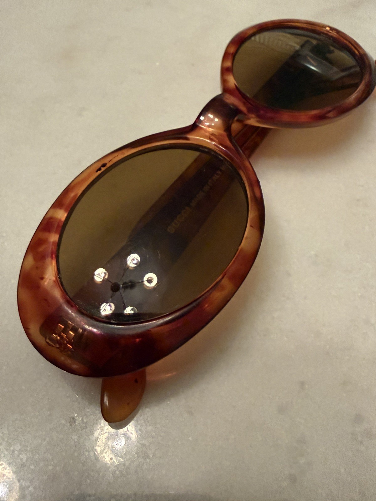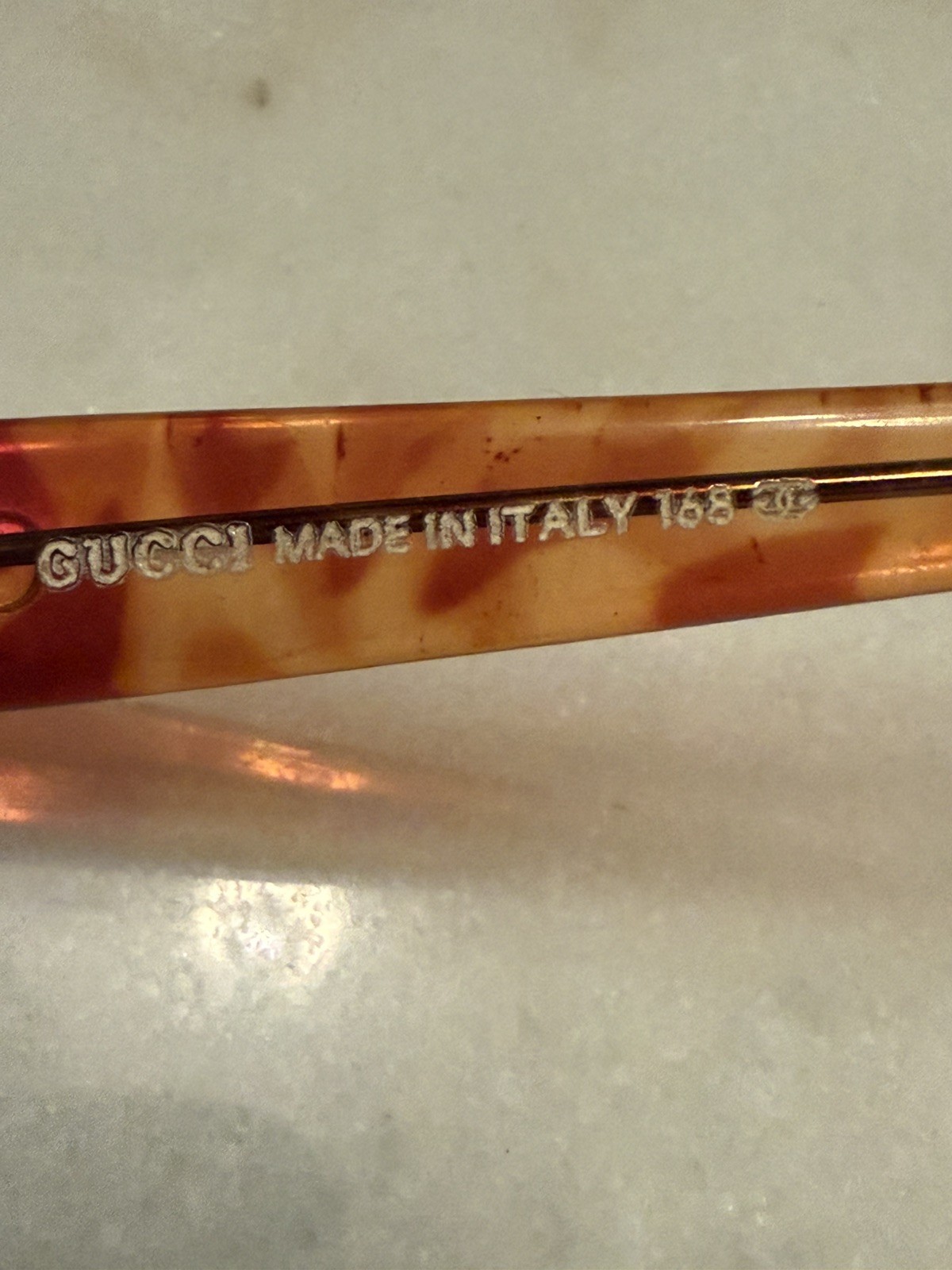 как выглядит VINTAGE GUCCI light tortoiseshell oval frame sunglasses 168 MINOR REPAIR фото