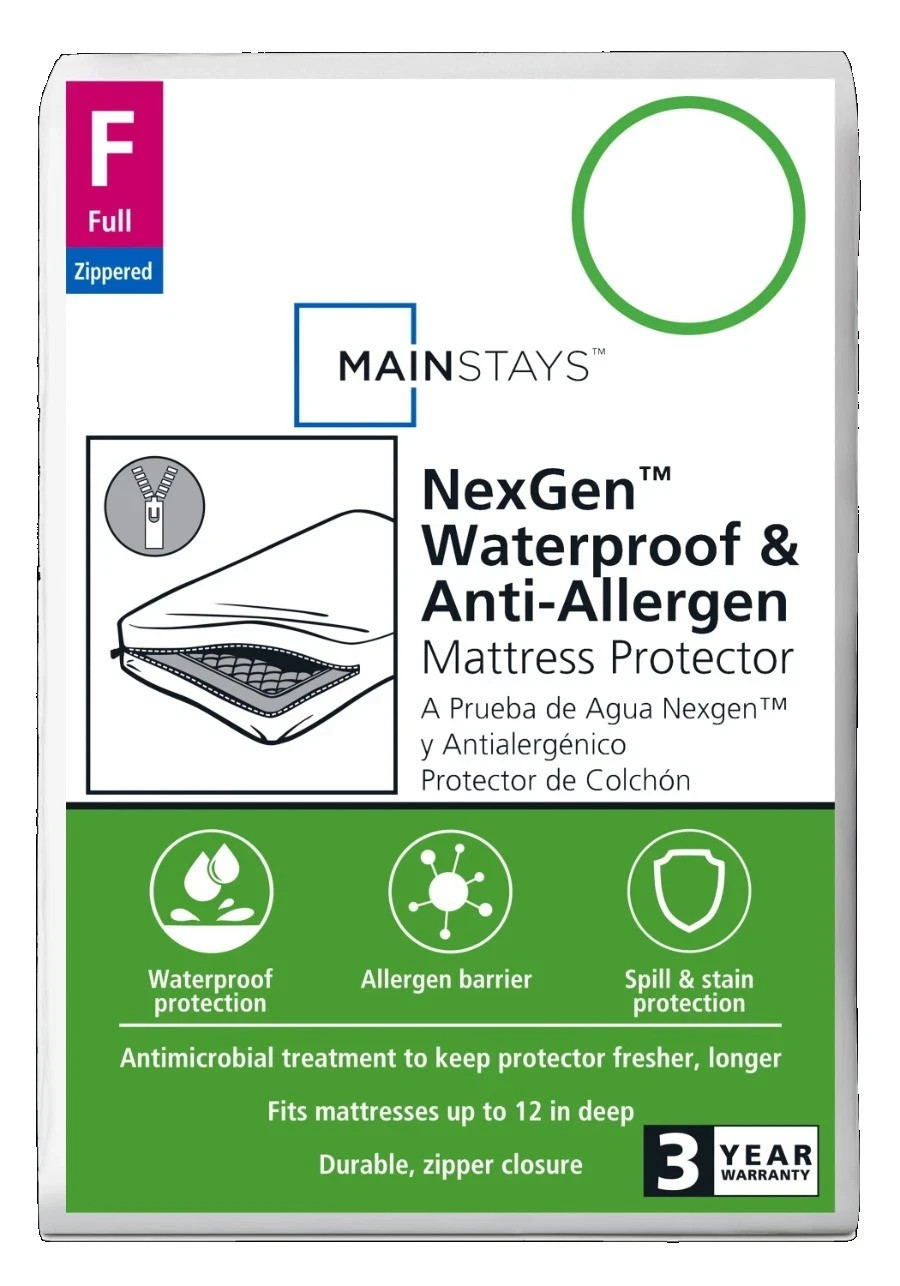 Mainstays Nexgen Waterproof Anti-Allergen Zippered Mattress Protector Size Full