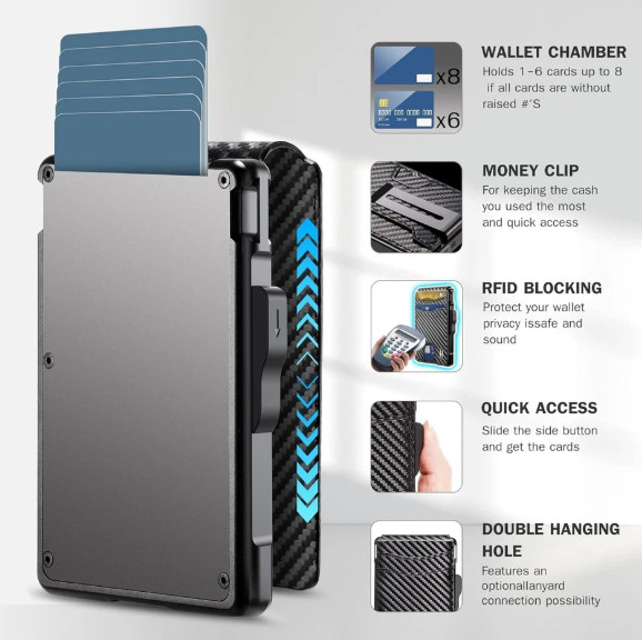 как выглядит Men Slim Pop Up Bifold Wallet with Money Clip, Minimalist Wallet RFID Blocking фото