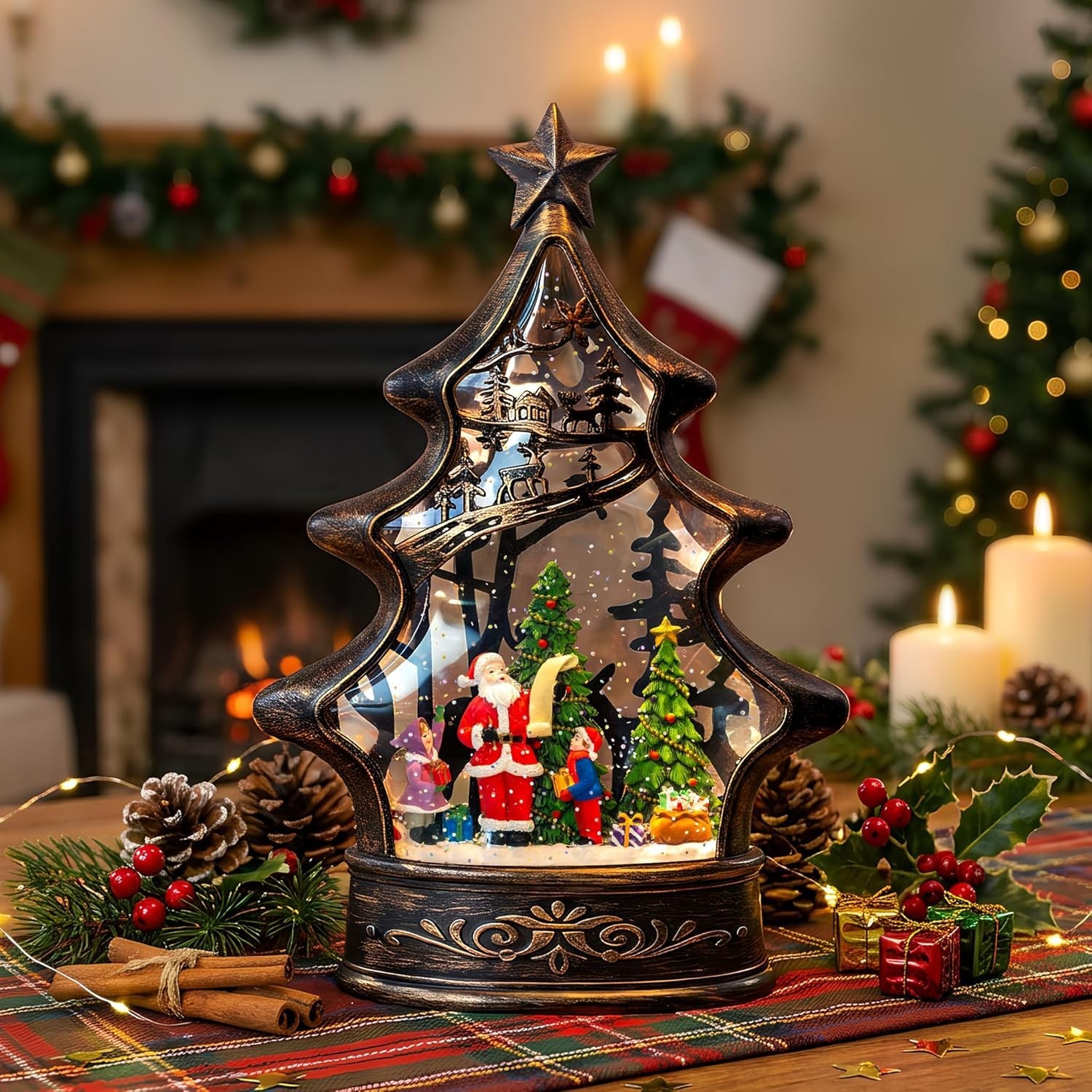Musical Snow Globe Christmas Tree Lantern Lighted Santa List Christmas Snow W...