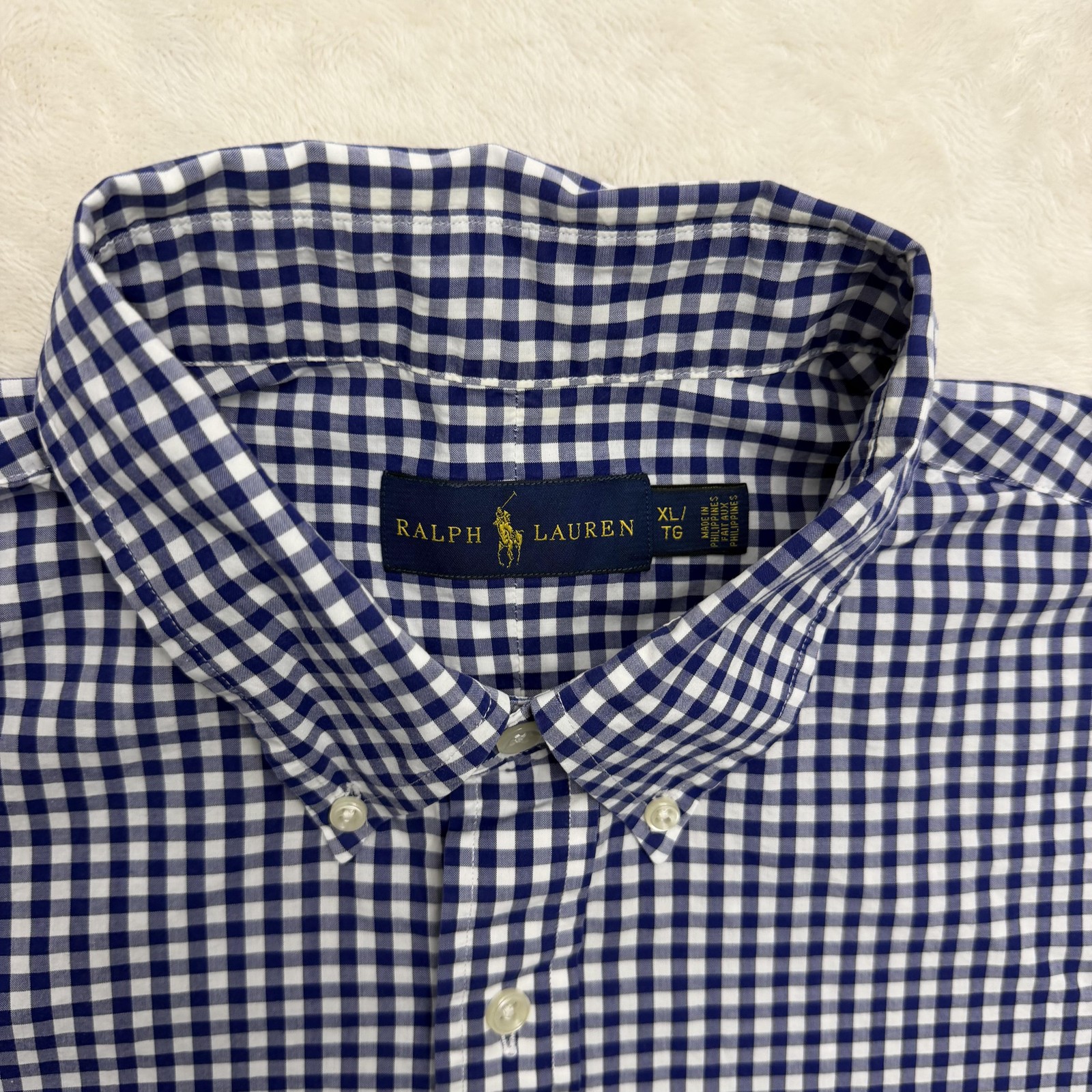 Ralph Lauren Shirt Mens XL Blue Check Button Down Long Sleeve Cotton Casual