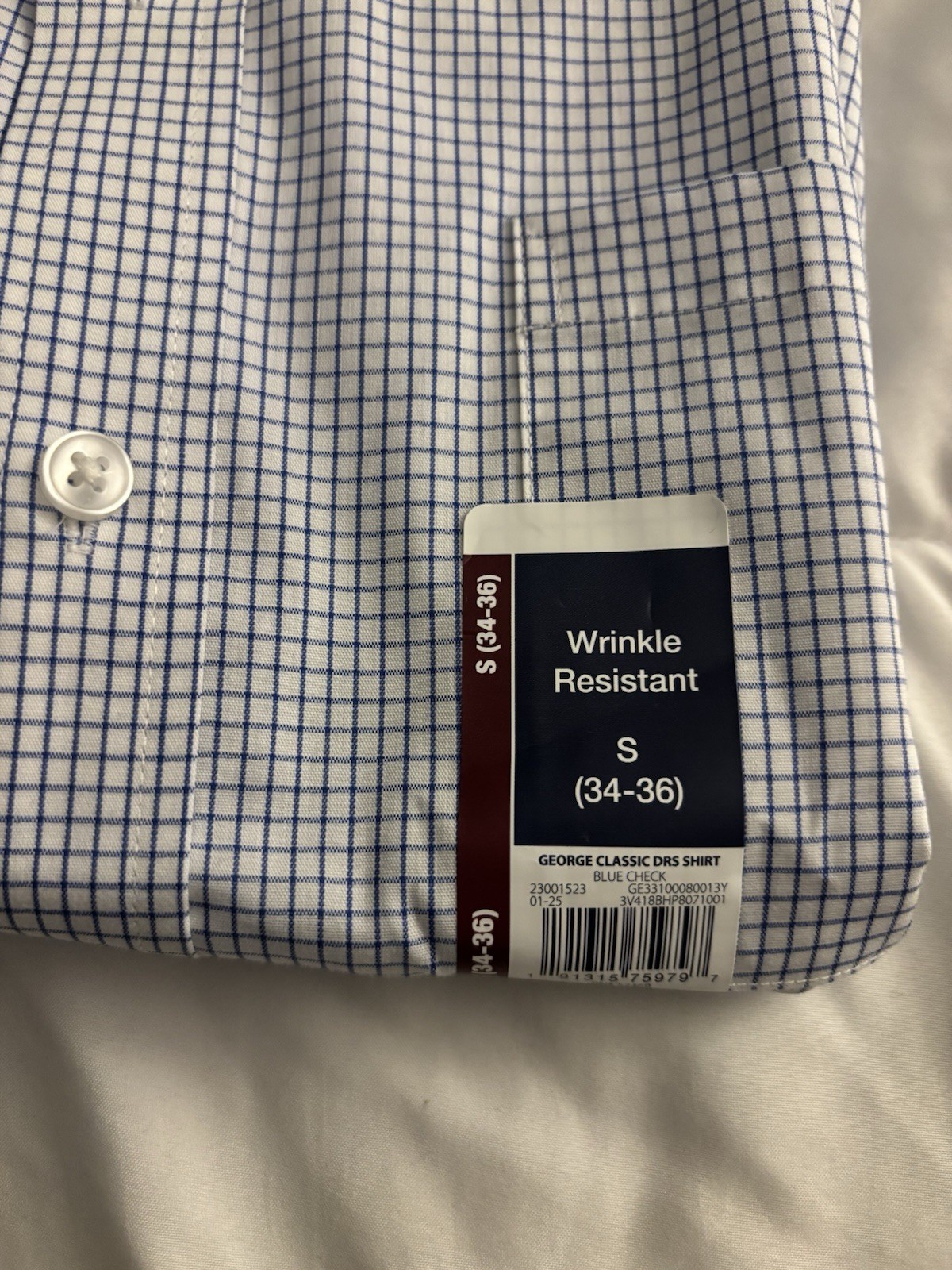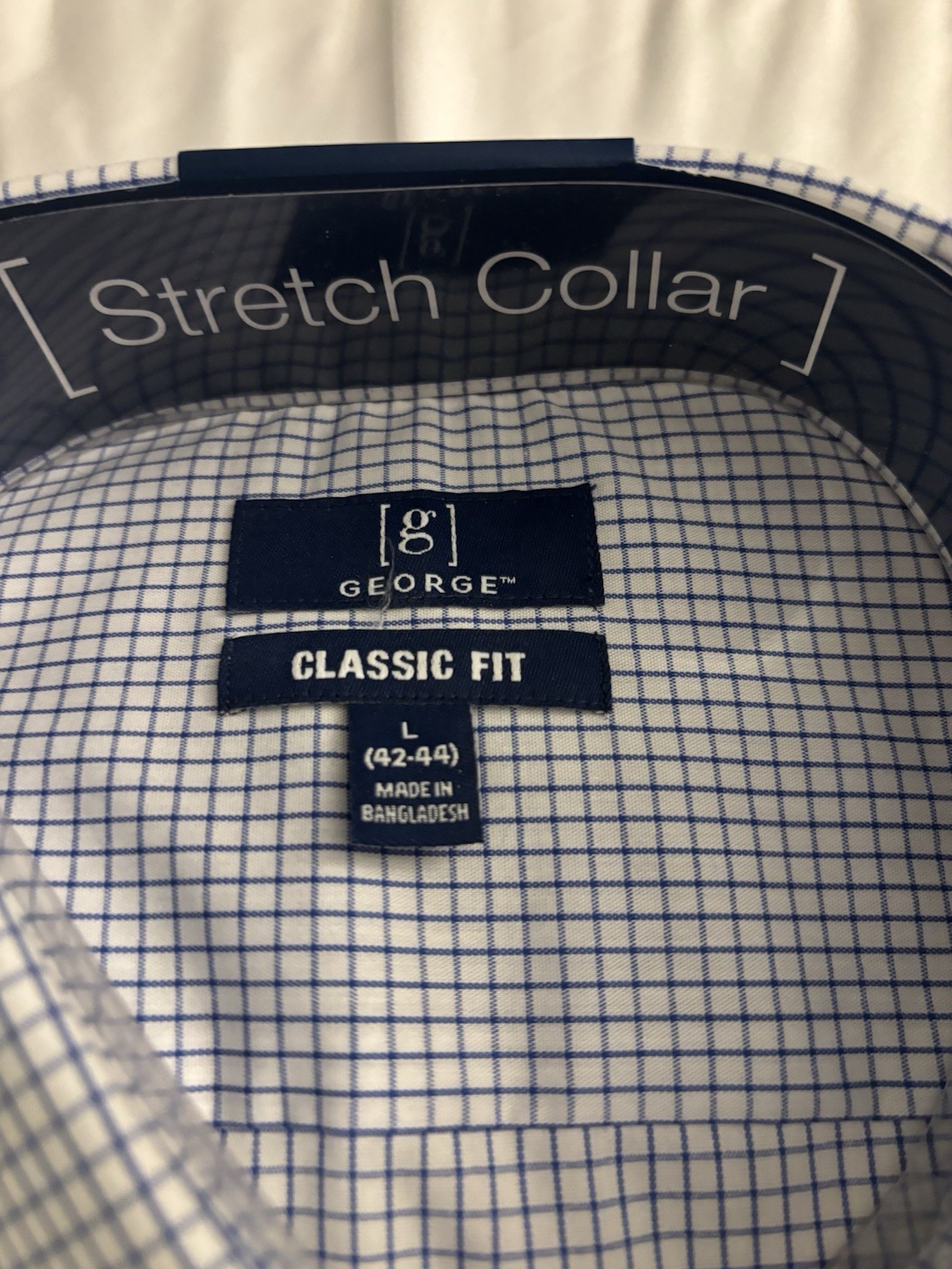 как выглядит George Mens Classic Fit White Blue Long Sleeve Dress Shirts Stretch Collar NWT фото