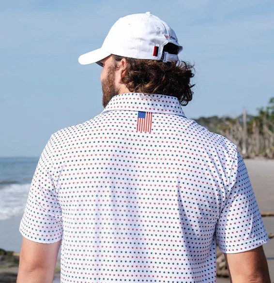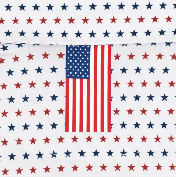 New, Rhoback Men s Short Sleeve Performance Polo White Red Navy Stars