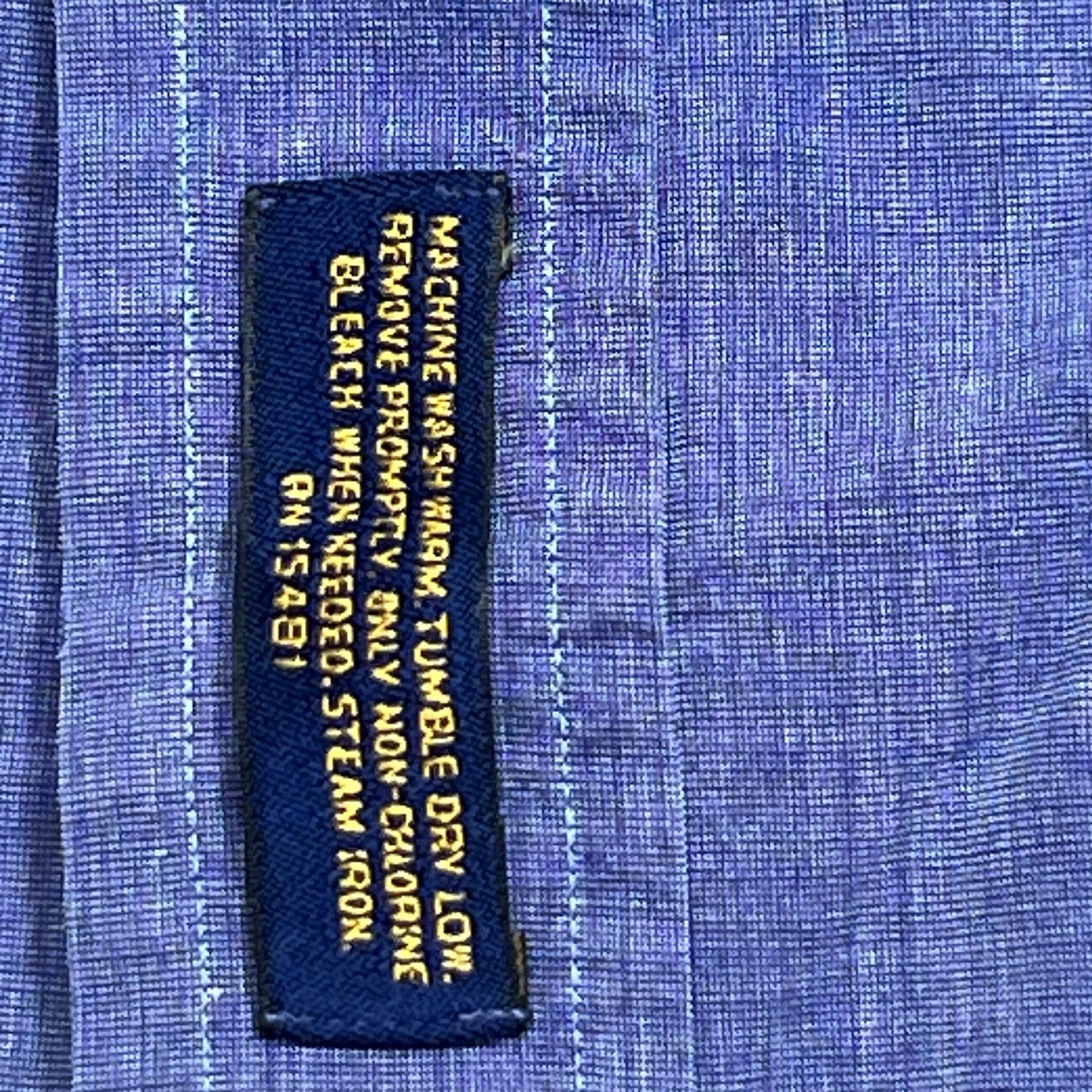 как выглядит Tommy Hilfiger Mens 17.5 33 Blue Cotton Denim Pattern Button Up Long Sl. Shirt фото