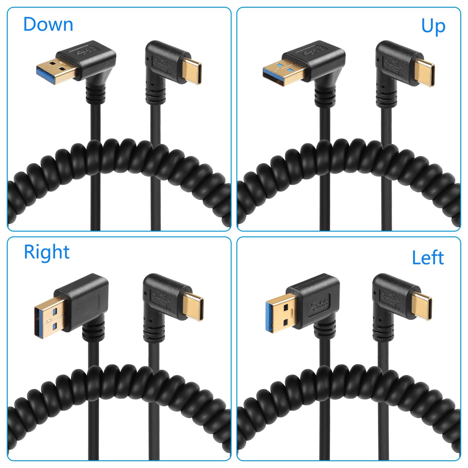 SinLoon 90 Degree USB Type C Spring Cable 5Gbps Retractable USB3.0 to 1 meter