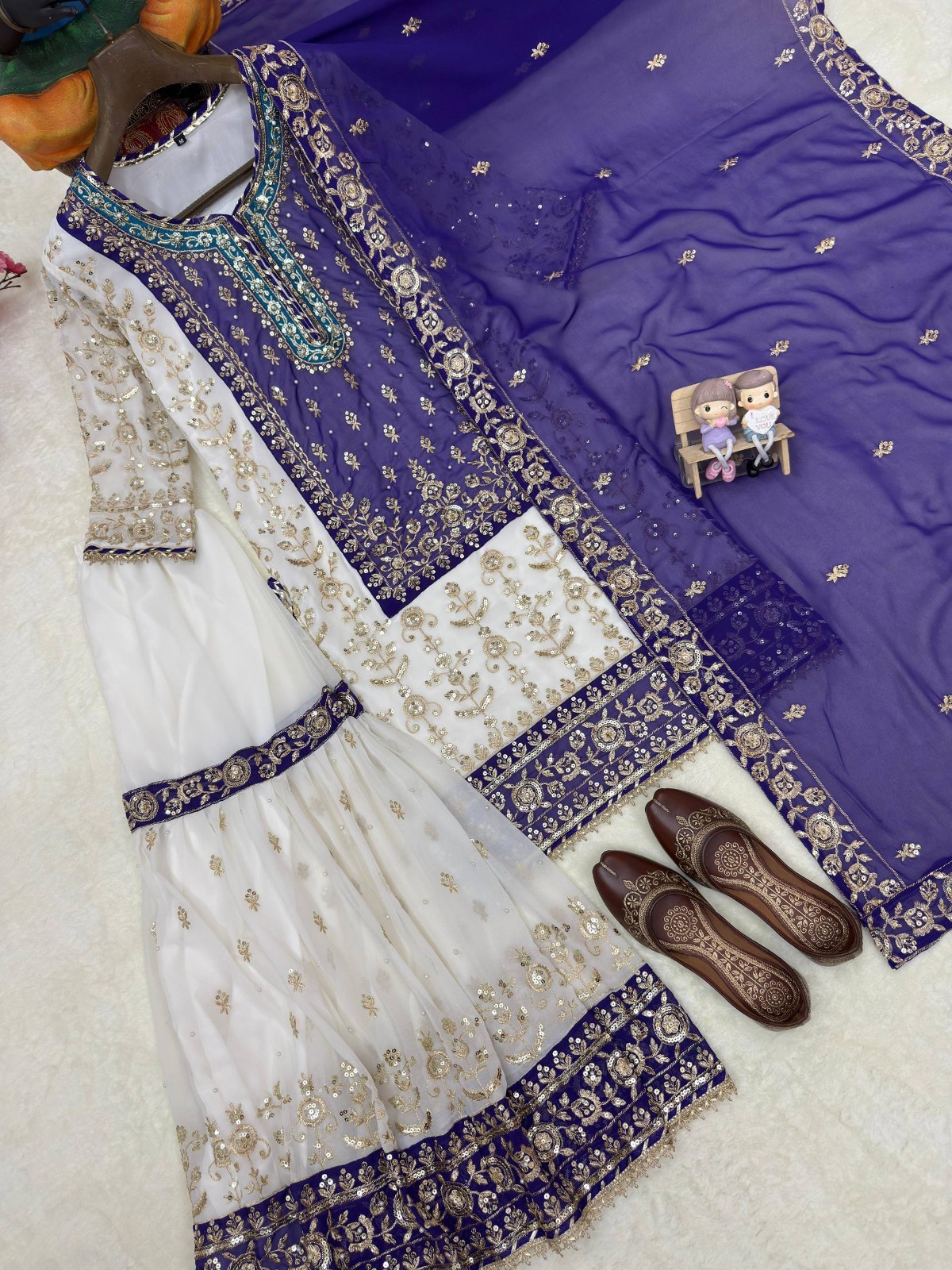 SHARARA WORK: Beautiful 5mm sequins & zari Embroidery work With Pearl Moti WorK