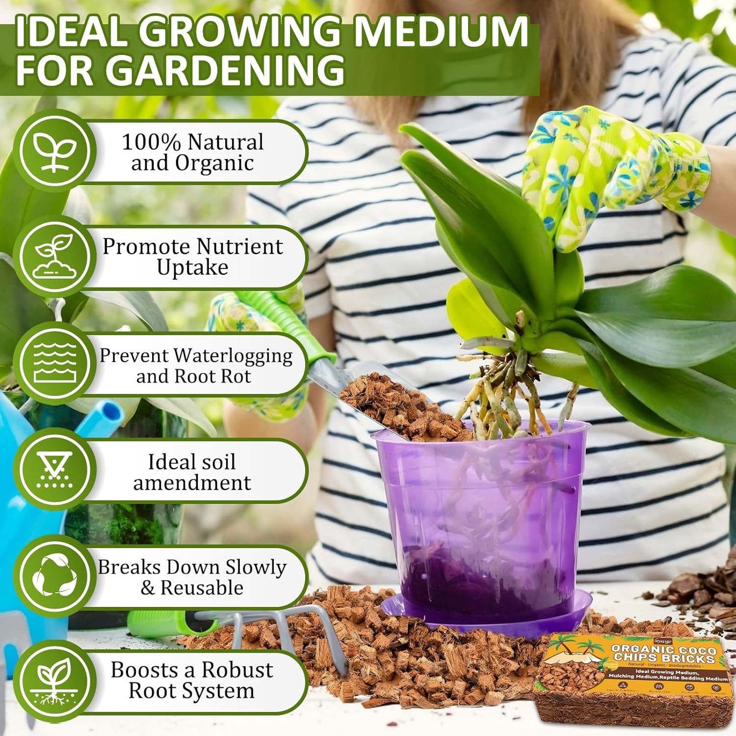 Legigo 1.1 LB Coco Coir Chips for Plants- 100 Organic Coconut Chips Brick Potti