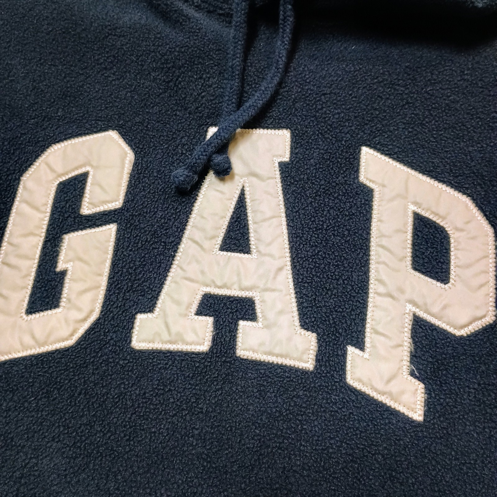 Y2K Vtg GAP Dark Blue Fleece Big Letter Spell Out Hoodie Small