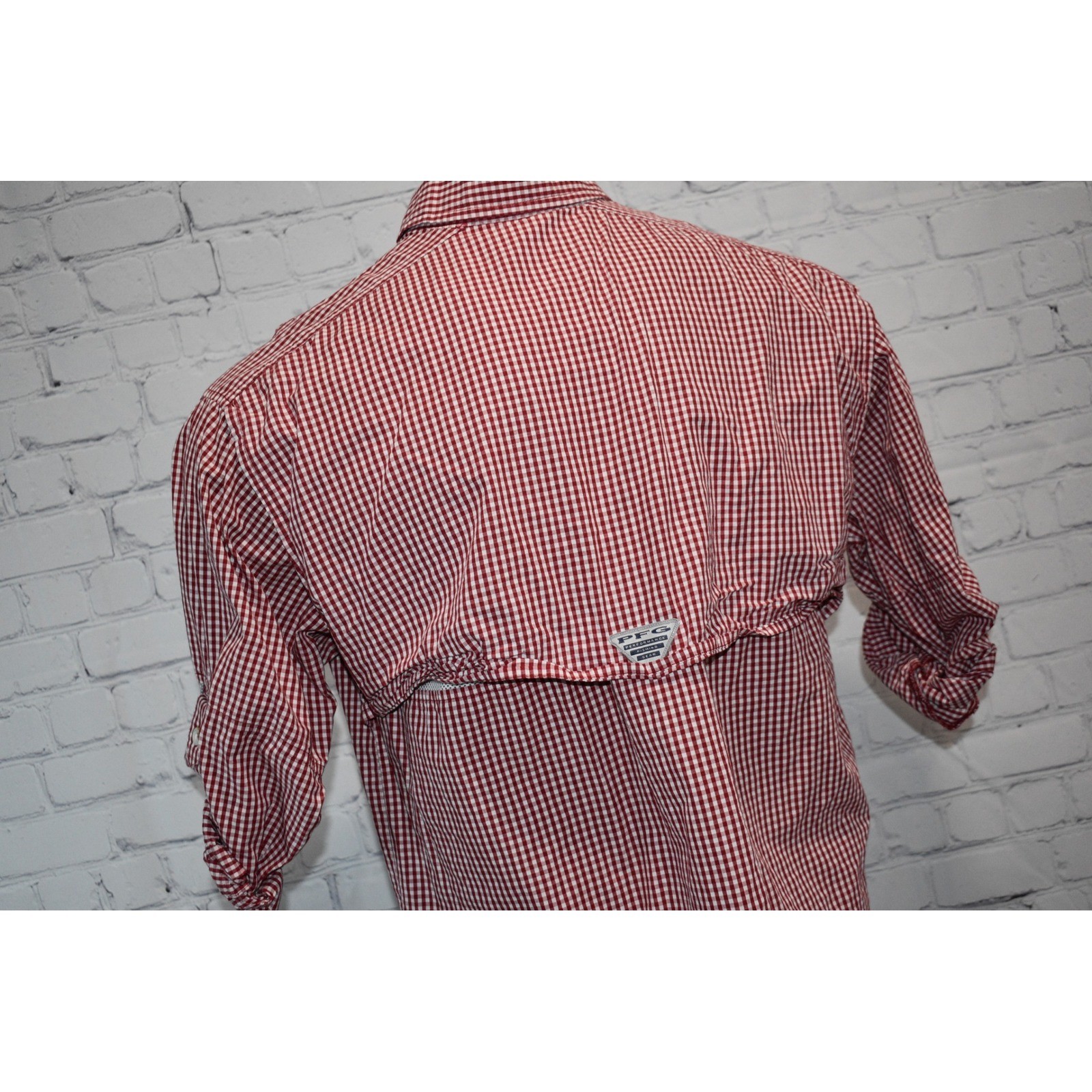 как выглядит Columbia PFG Performance Fishing Gear Shirt Mens Medium Red Gingham Plaid Vented фото
