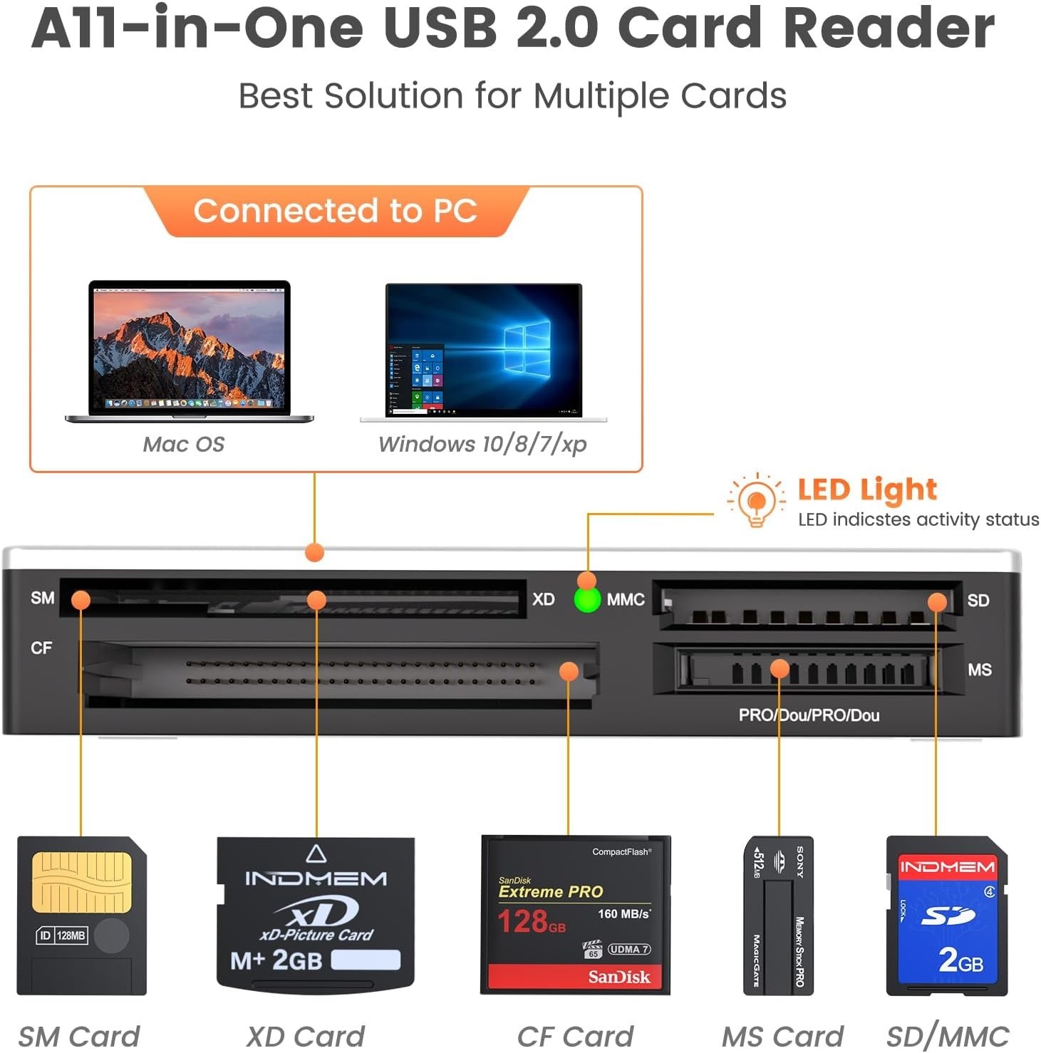 SmartMedia Card Reader Writer All-in-1 USB Universal Multi Card Adapter Slim ...