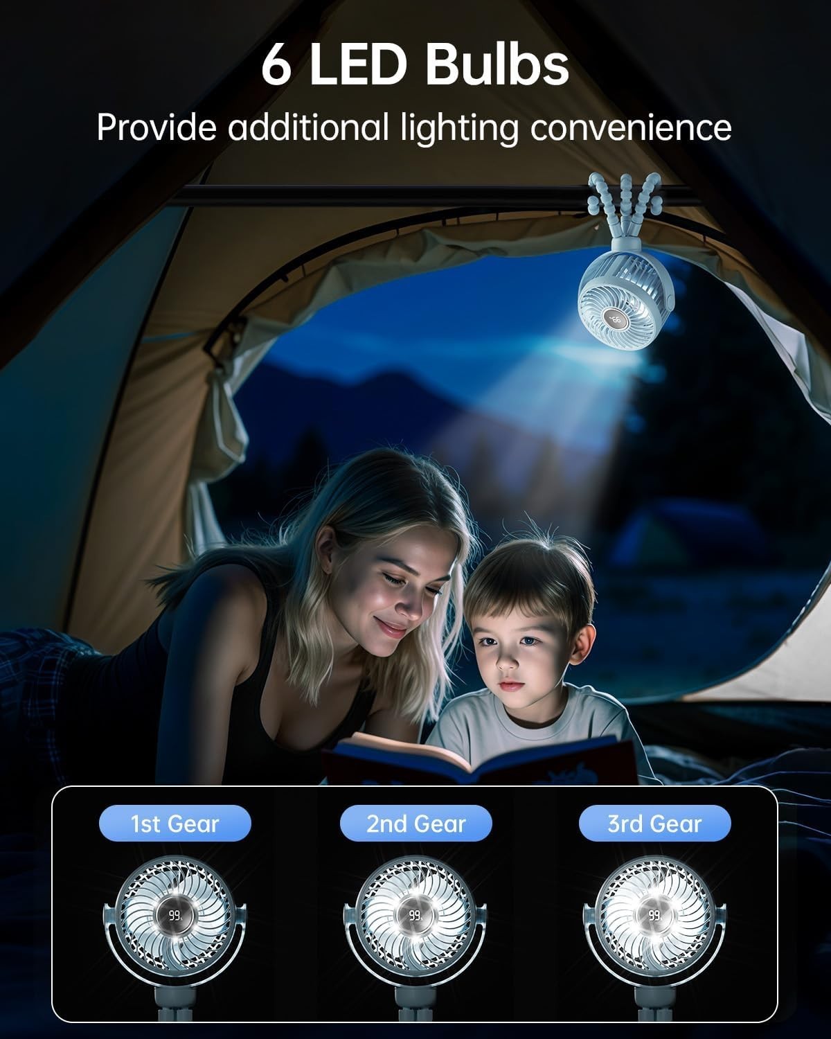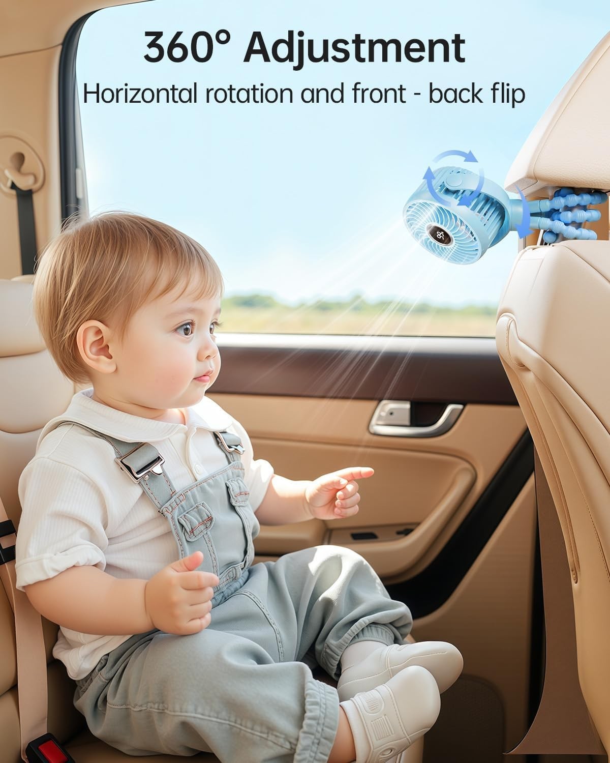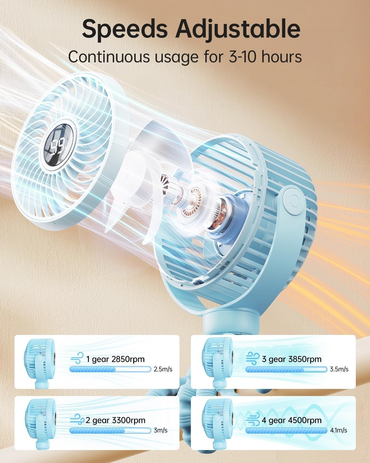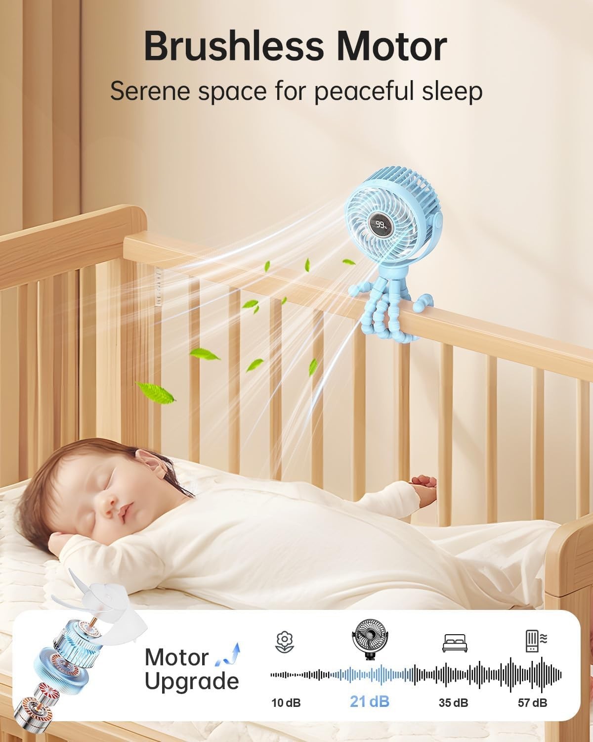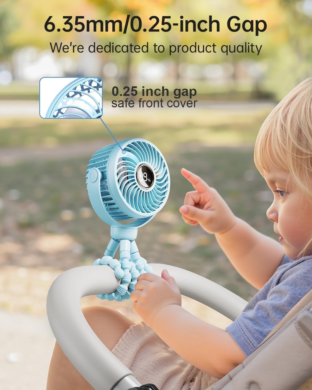Mini Portable Stroller Fan with Night Light for Travel, Blue