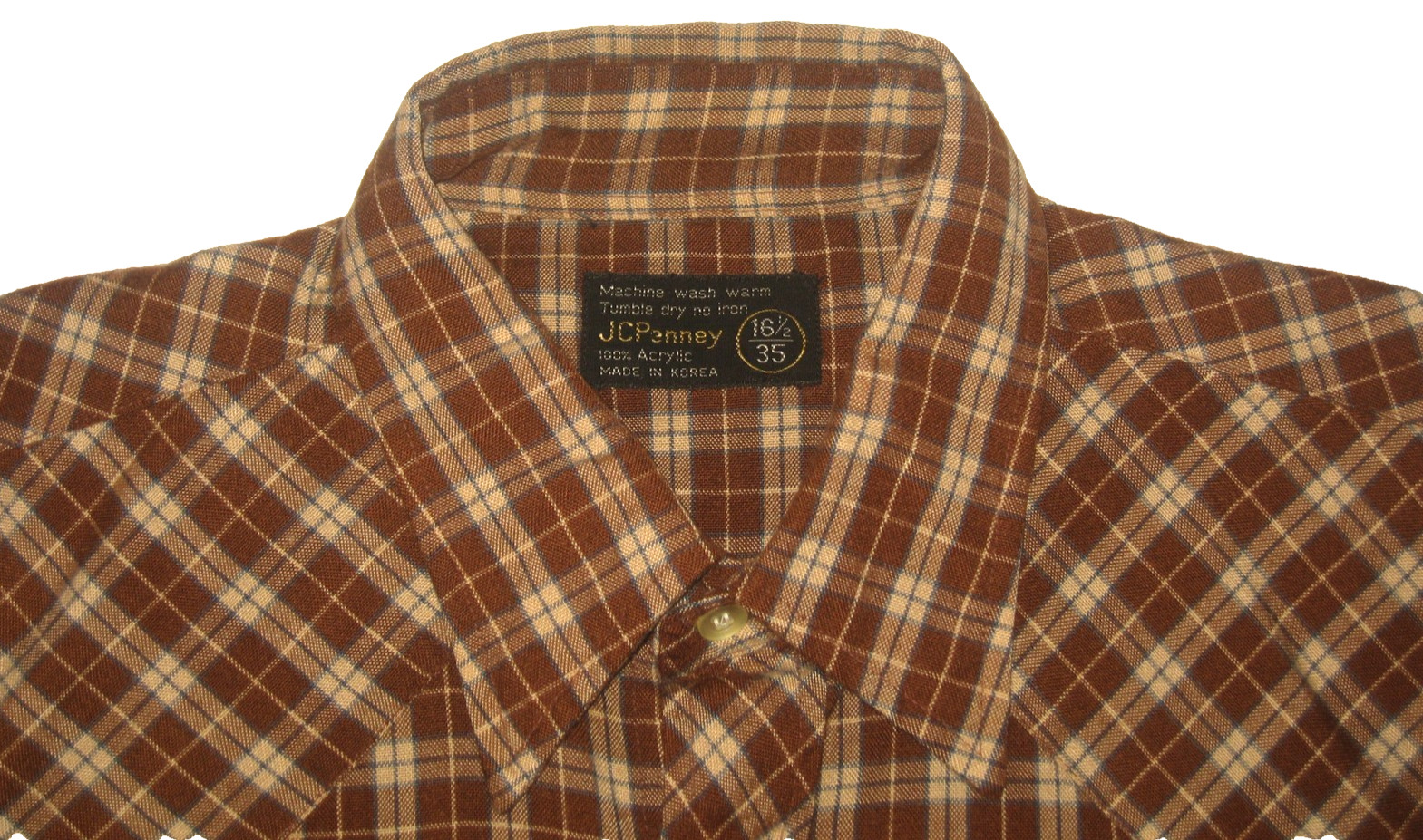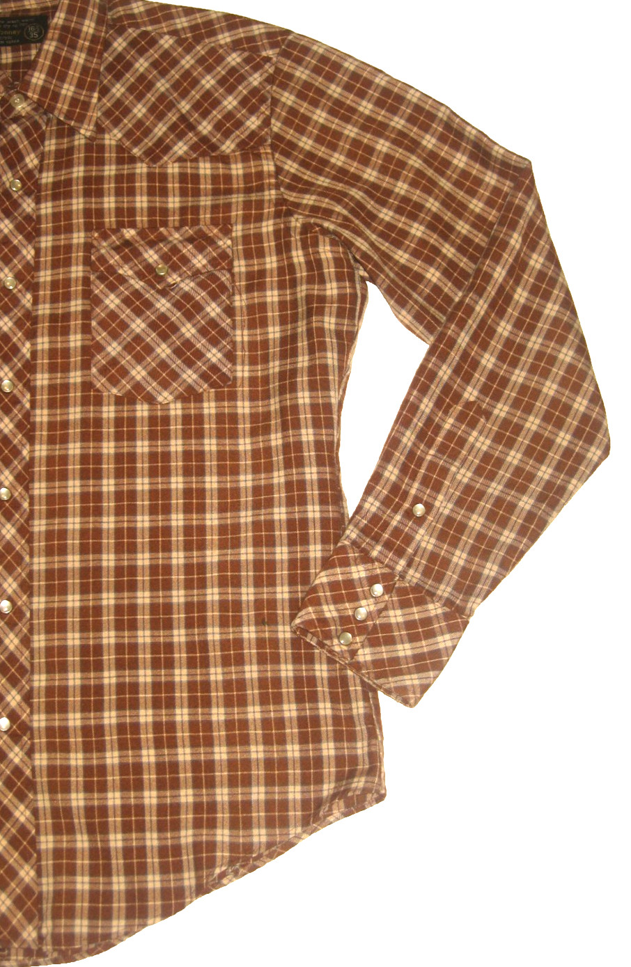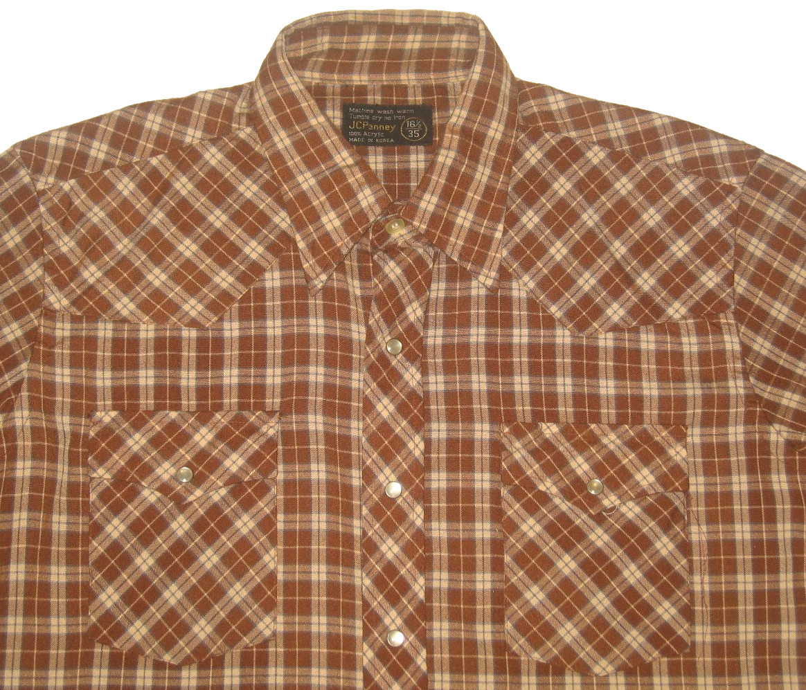 VtG 70s JC PENNEY Brown Plaid Pearl Snap Long Sleeve Western Shirt 16.5/35 Korea