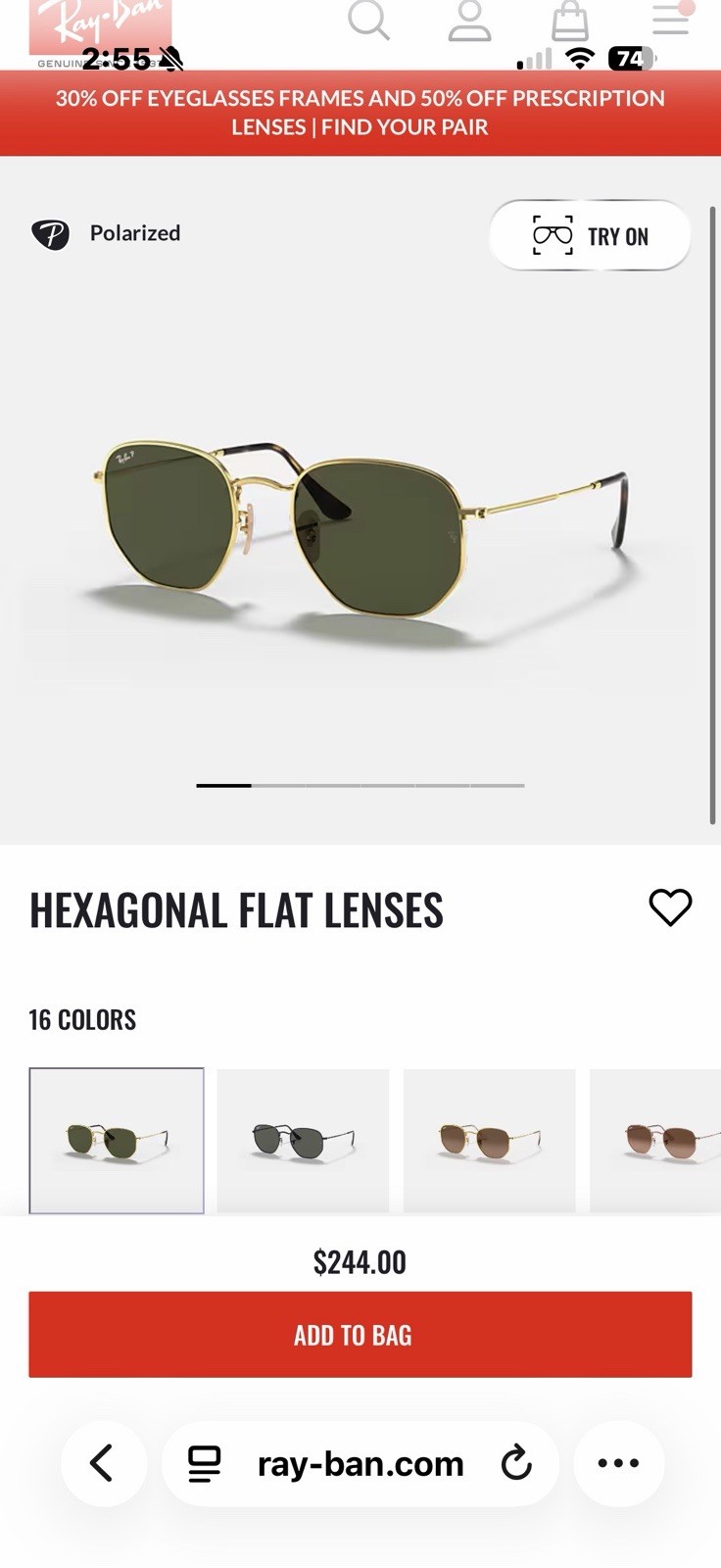 Модель: Ray-Ban Hexagonal Flat Lenses