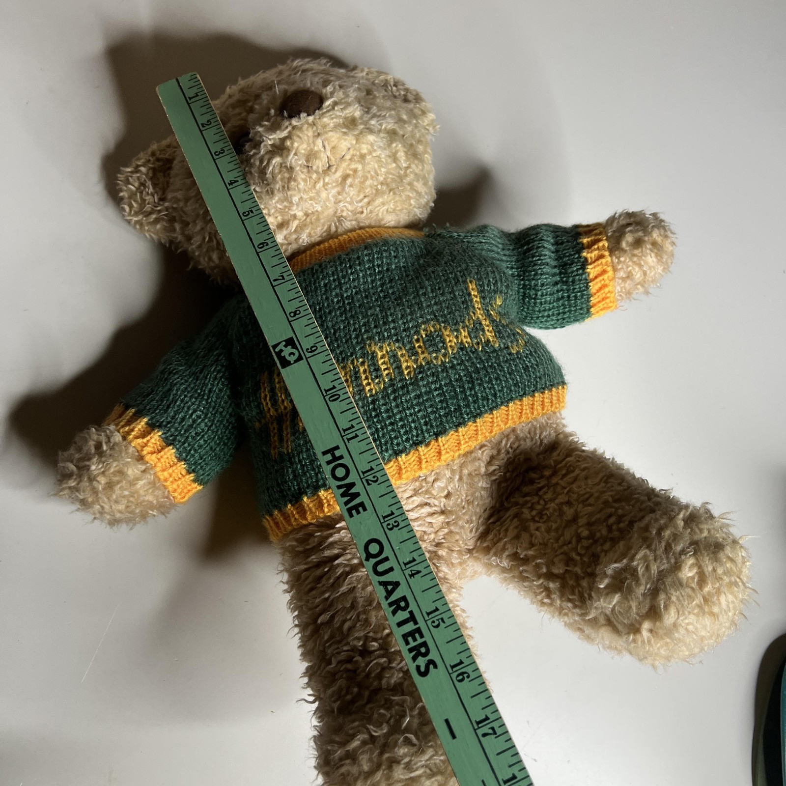 Harrods Teddy Bear Plush Stuffed Animal Toy Medium Beige Green Logo Sweater