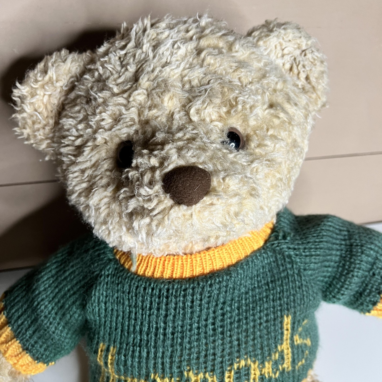 как выглядит Harrods Teddy Bear Plush Stuffed Animal Toy Medium Beige Green Logo Sweater фото