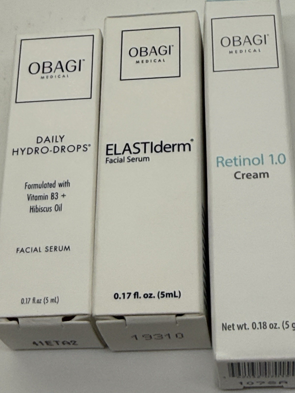 Obagi ElastiDerm Facial Serum 5mL, Hydro-Drops Serum 5mL, Retinol 5g Set Of 3