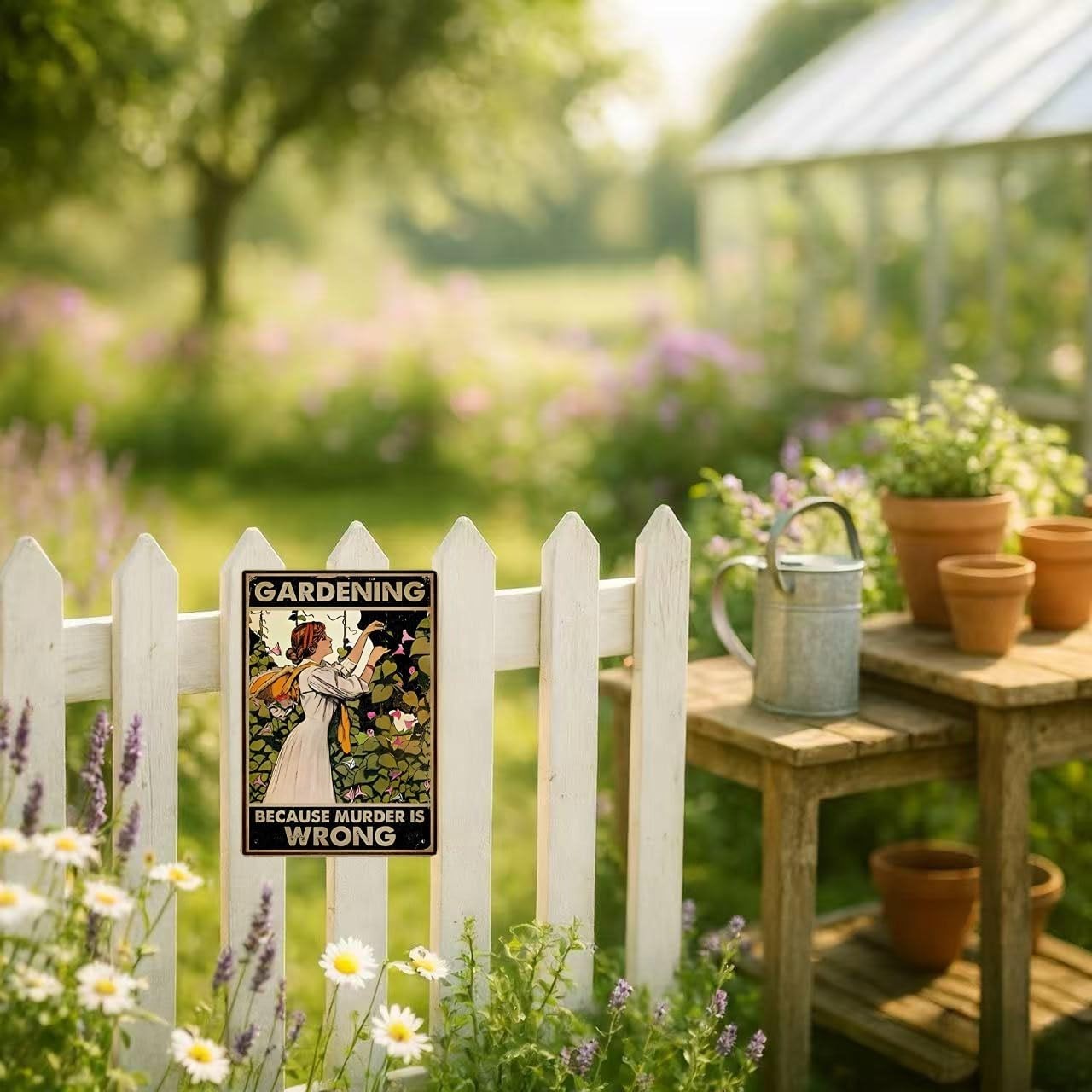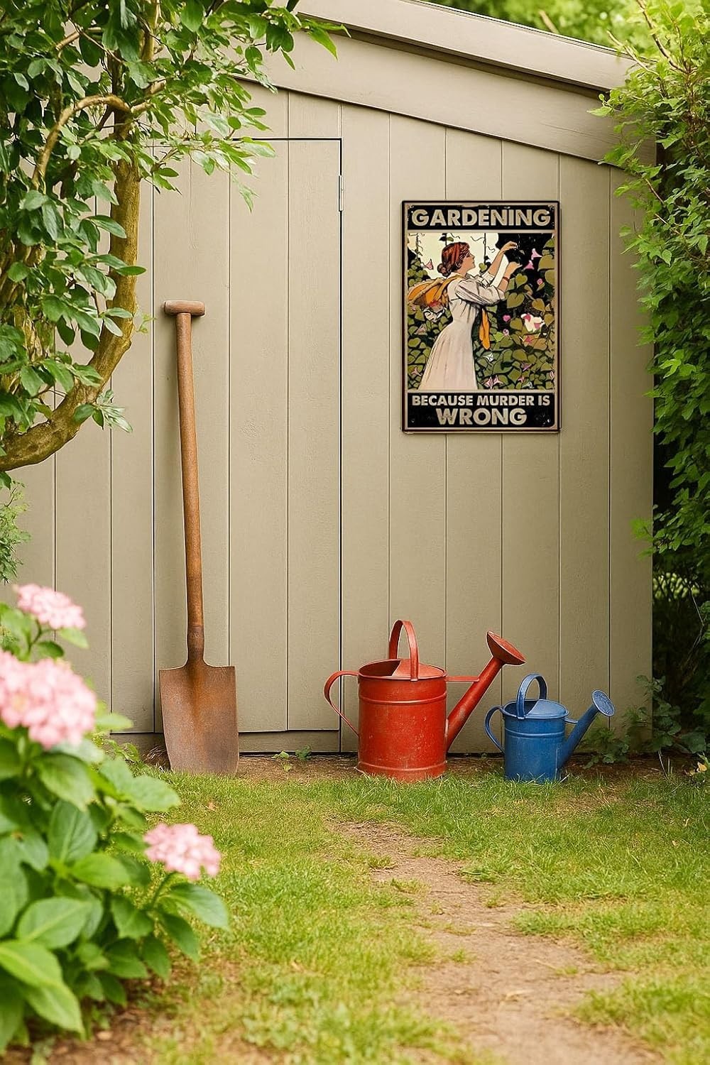 Funny Gardening Sign Garden Gift For Woman BECAUSE MURDER IS WRONG - 12x8 In...