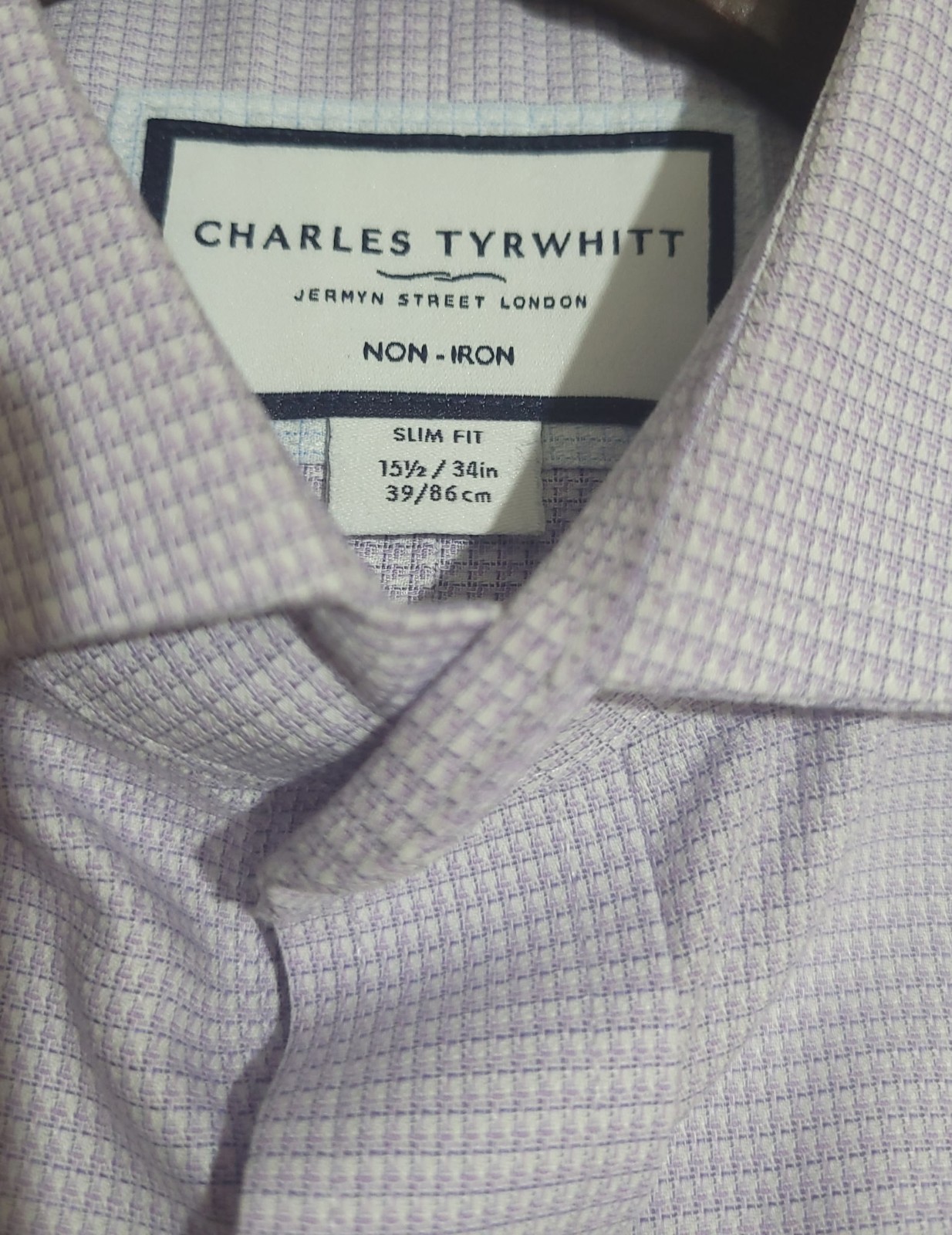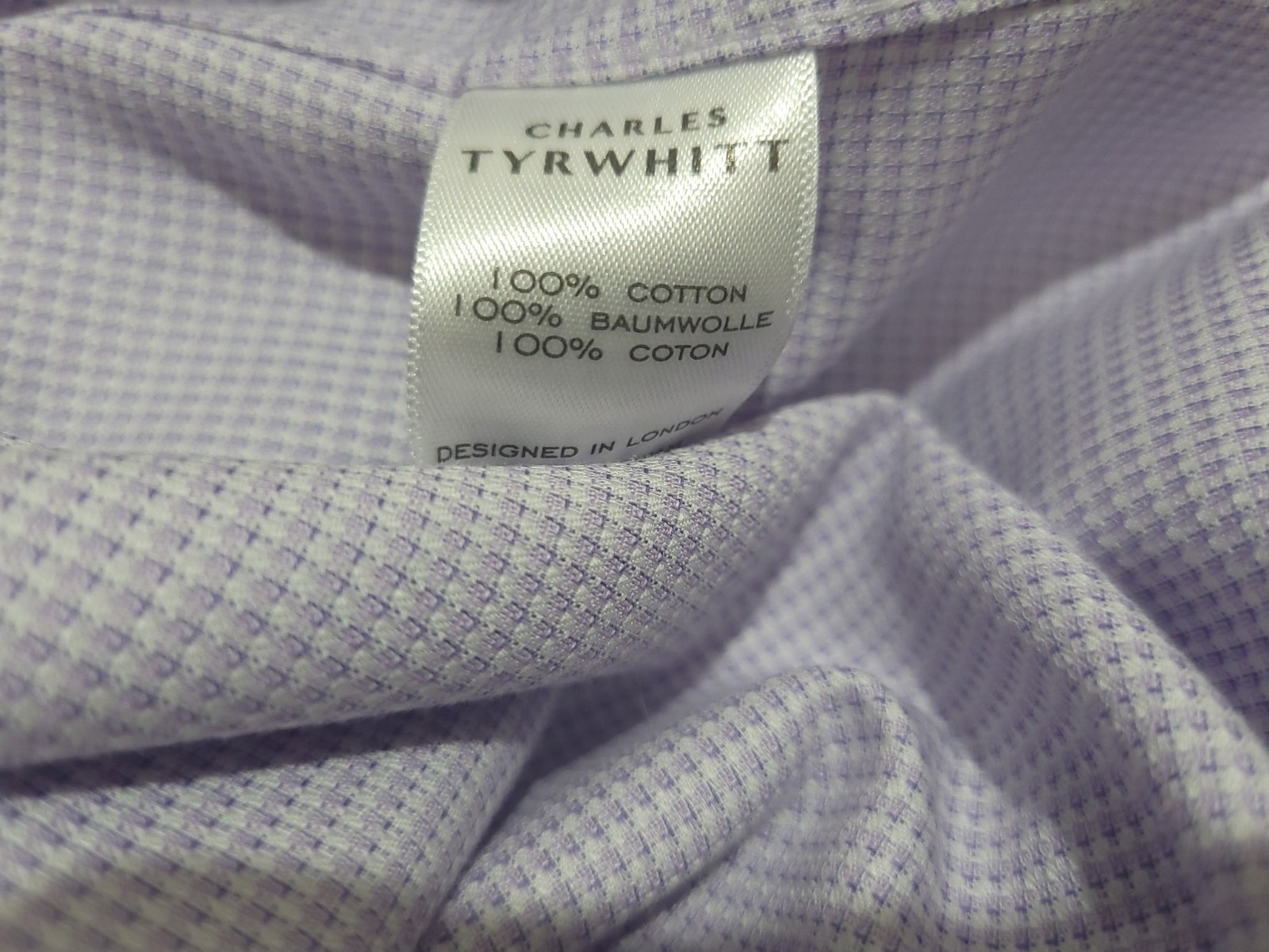 как выглядит Charles Tyrwhitt Shirt 15 1/2 33 Extra Slim Fit Non-Iron Purple White Long Sleev фото