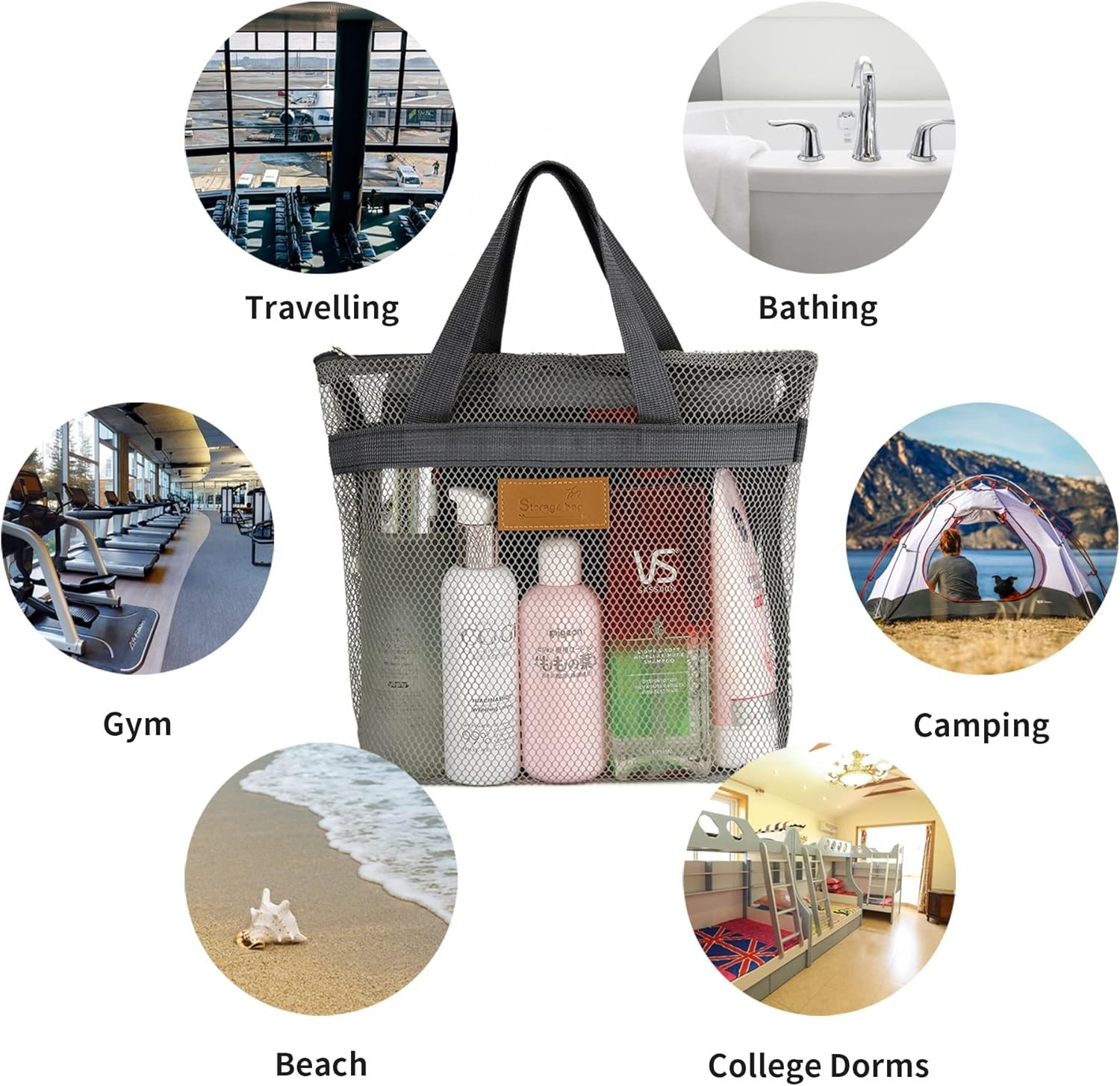 Mesh Shower Caddy Bag Portable Hanging Toiletry and Bath Organizer with Zipper f