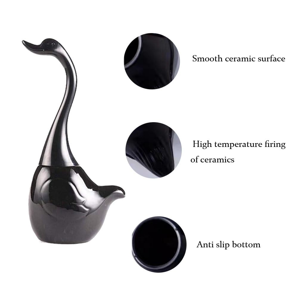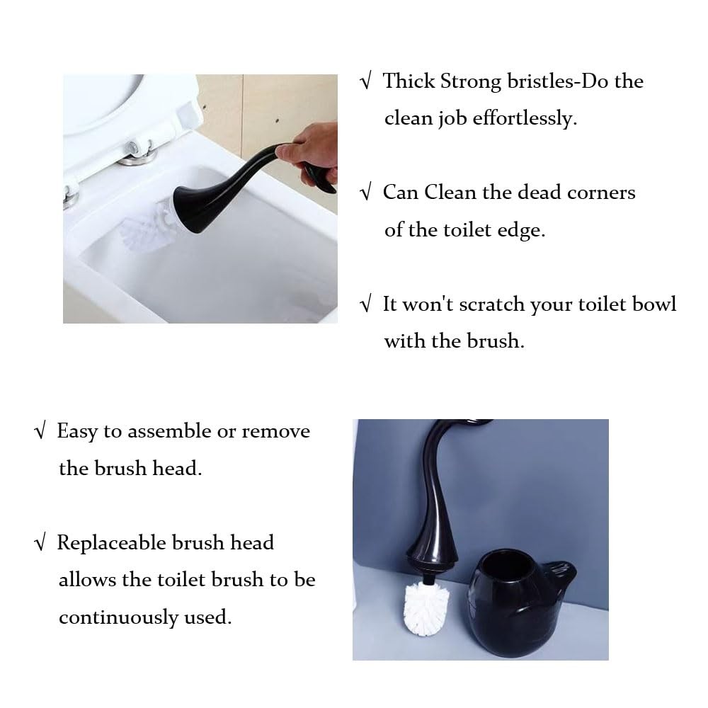 Black Toilet Brush and Holder,Cute Bathroom Decor Ceramic Toilet Bowl Brush H...