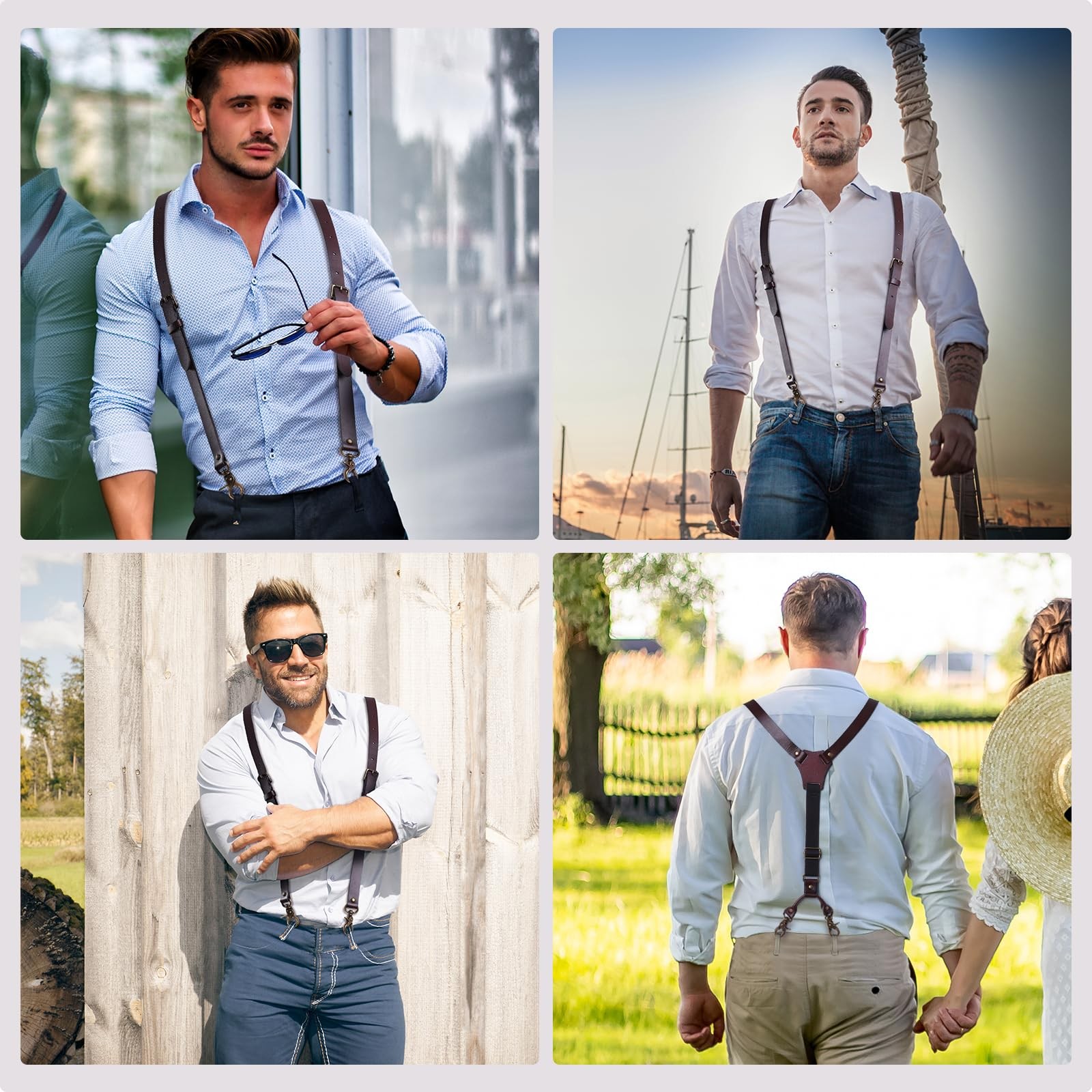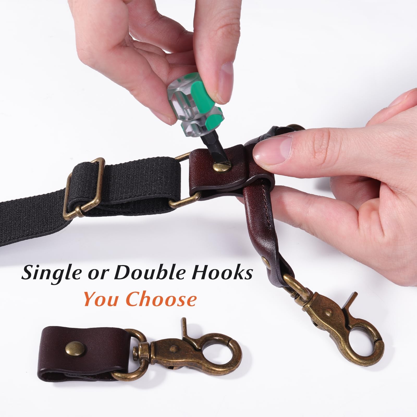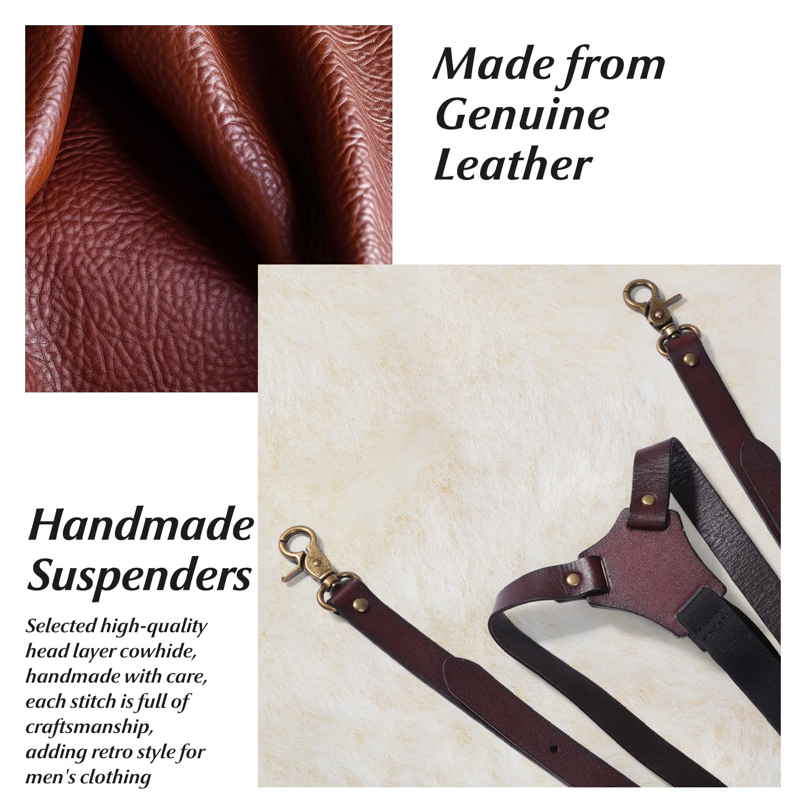 Genuine Leather Suspenders for Men, Heavy Duty Y Back Design Adjustable Suspe...