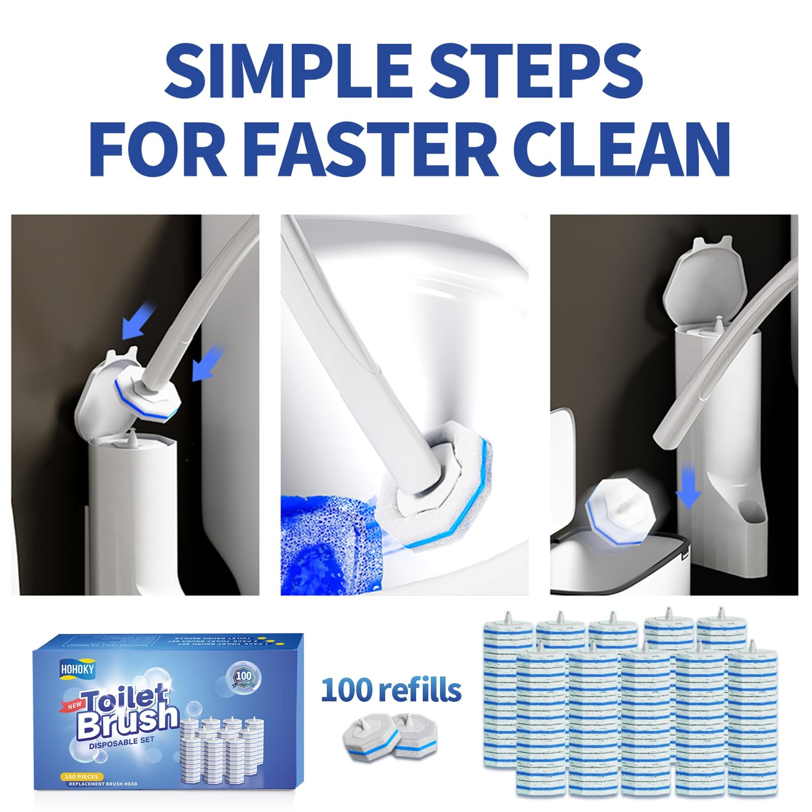 100pc Bulk Toilet Wand Refills - Disposable Toilet Brush Heads, Pack for Hous...