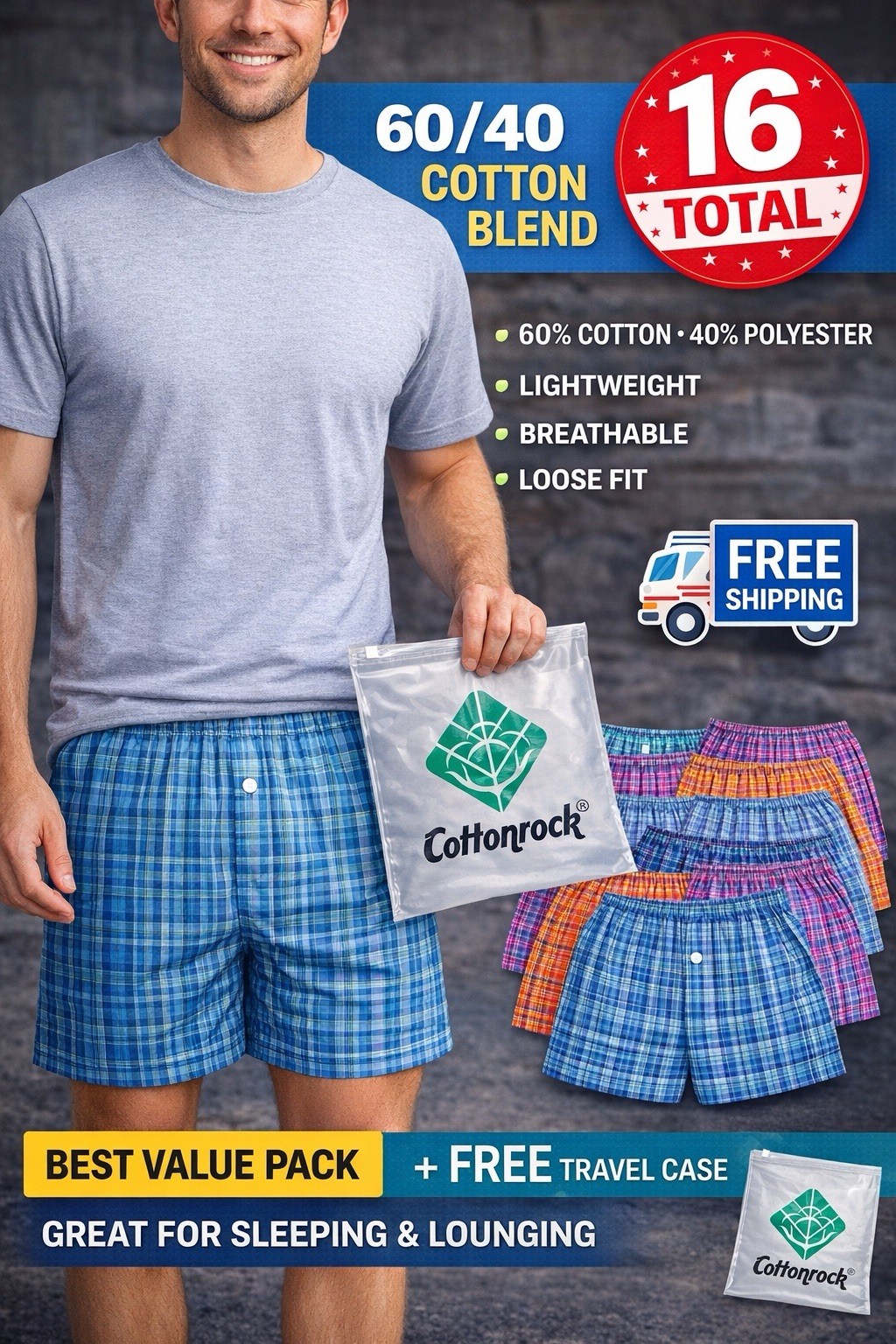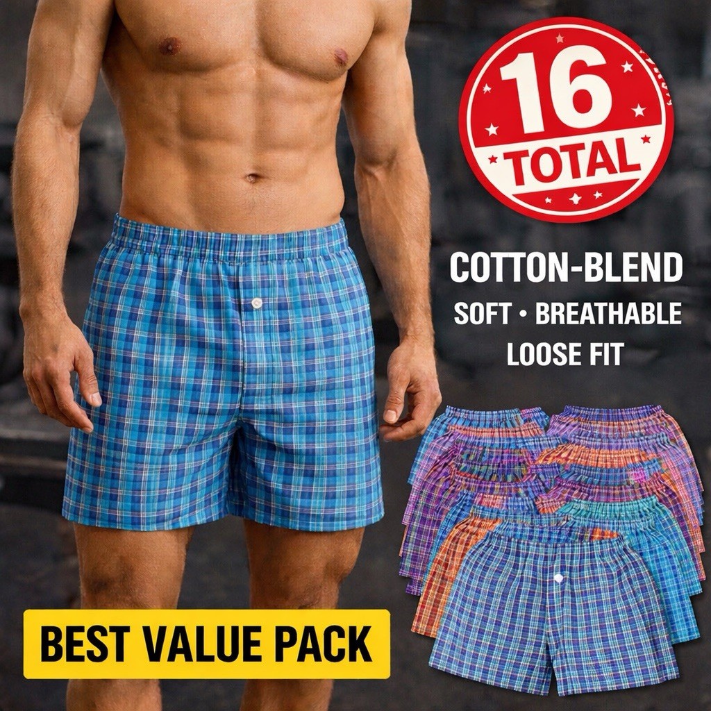 Men Cotton Blend Boxer Shorts New Value 16 Pack/ Soft Breathable Comfy Loose Fit