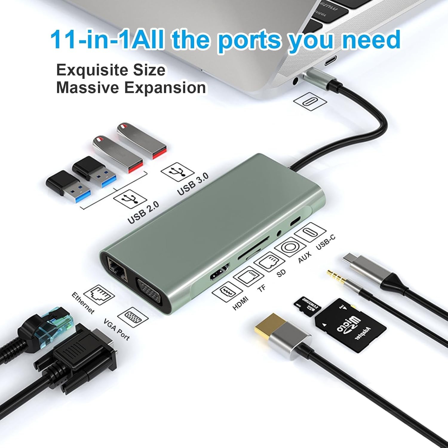 как выглядит USB C Hub 11-in-1 Docking Station, Type-C Multiport Adapter with 4K HDMI, VGA... фото