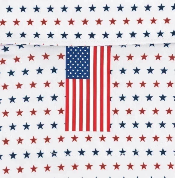 New, Rhoback Men s Short Sleeve Performance Polo White Red Navy Stars