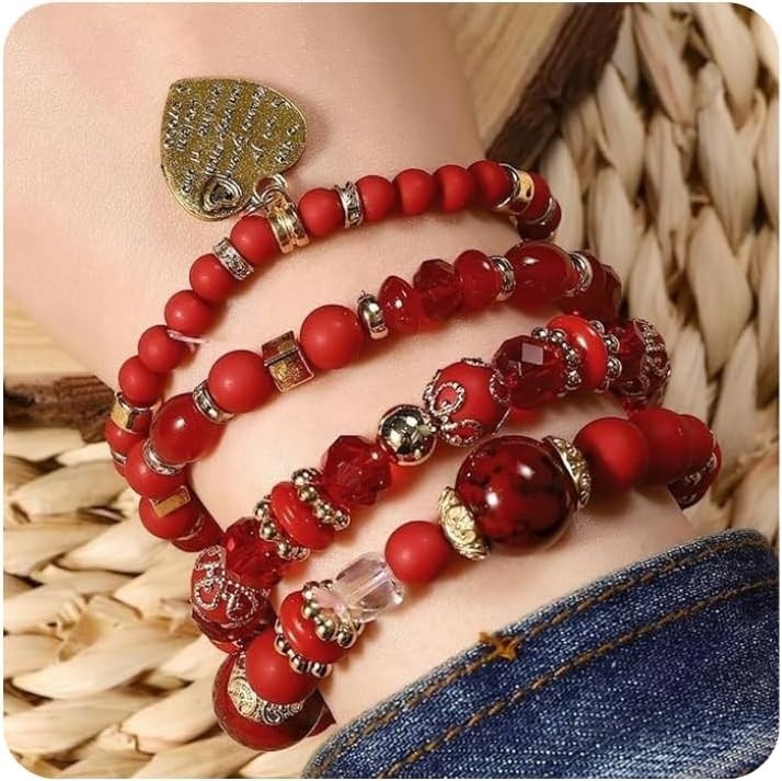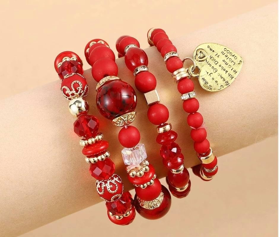 Women Beaded Bracelet Set Colorful Boho Stackable Trendy Design with Crysta...