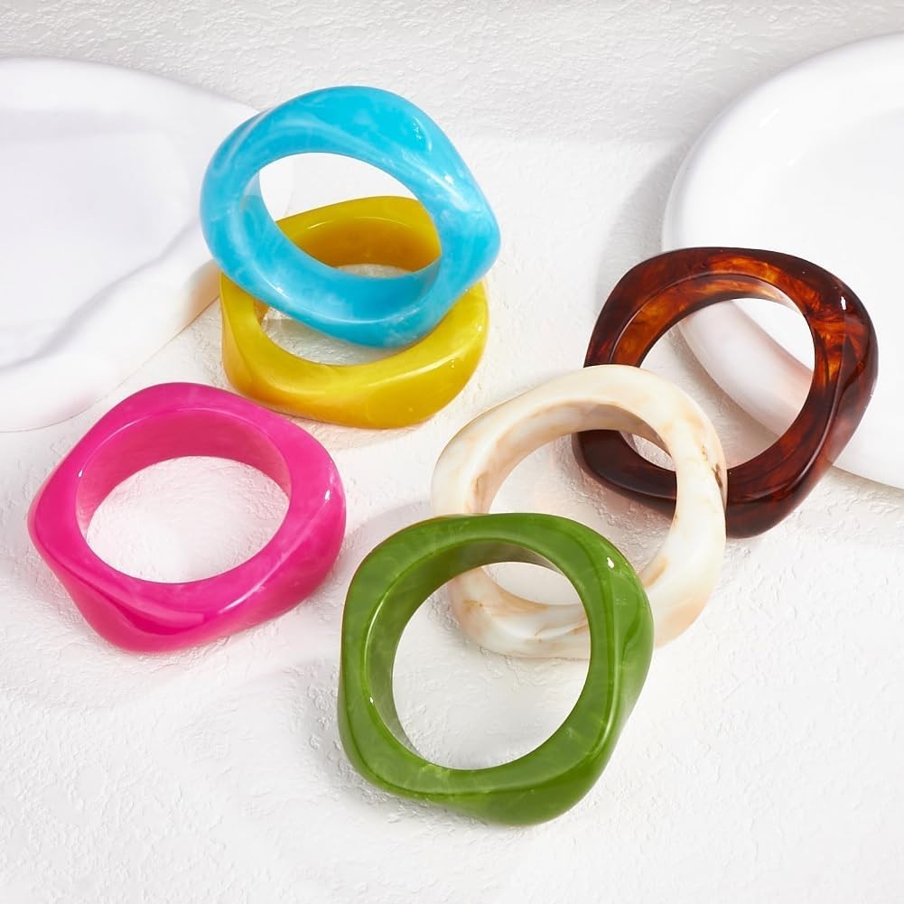 как выглядит 6 Pcs Colorful Square Acrylic Resin Bangle Bracelet Wide Geometric Irregular ... фото